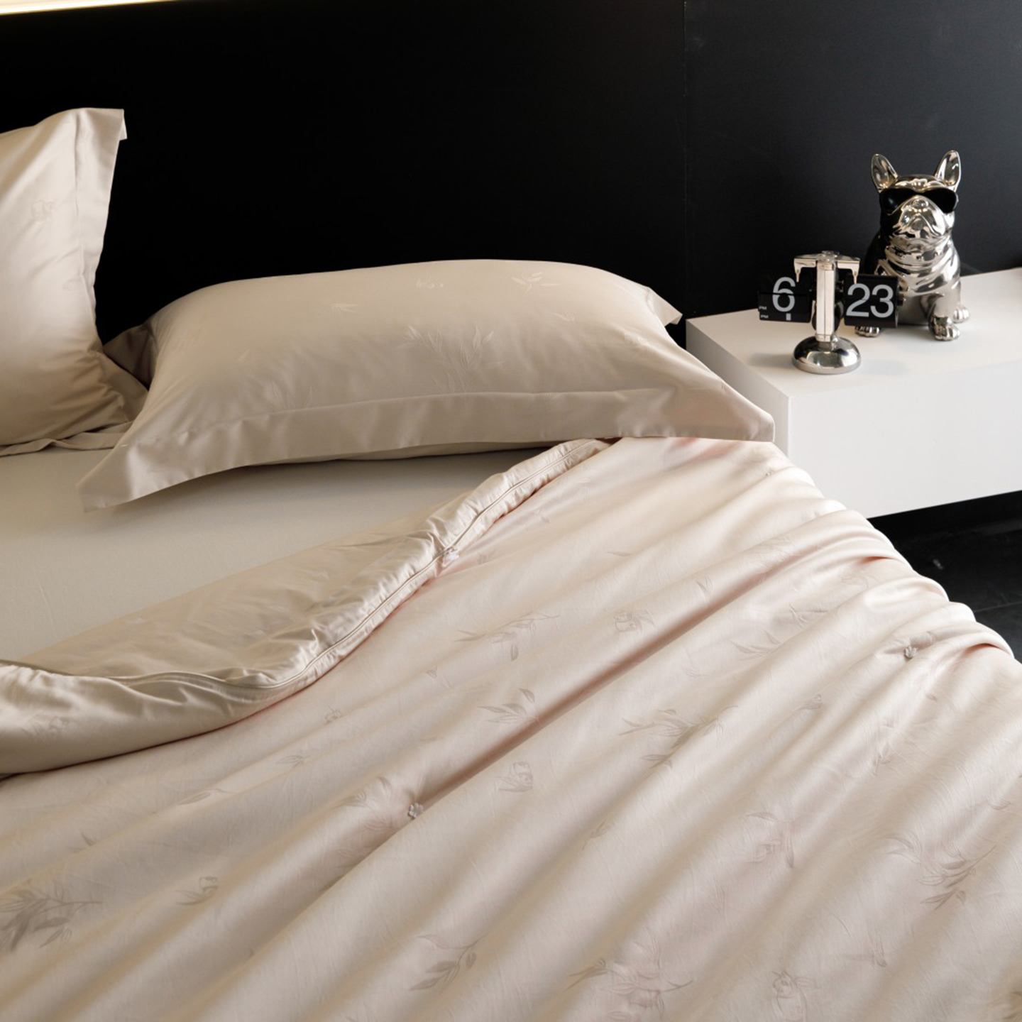• 91家纺网 家纺一手货源 找家纺 俏企鹅羽绒精品馆 2025新款80S大提花熊猫抱竹被子被芯 珍珠色