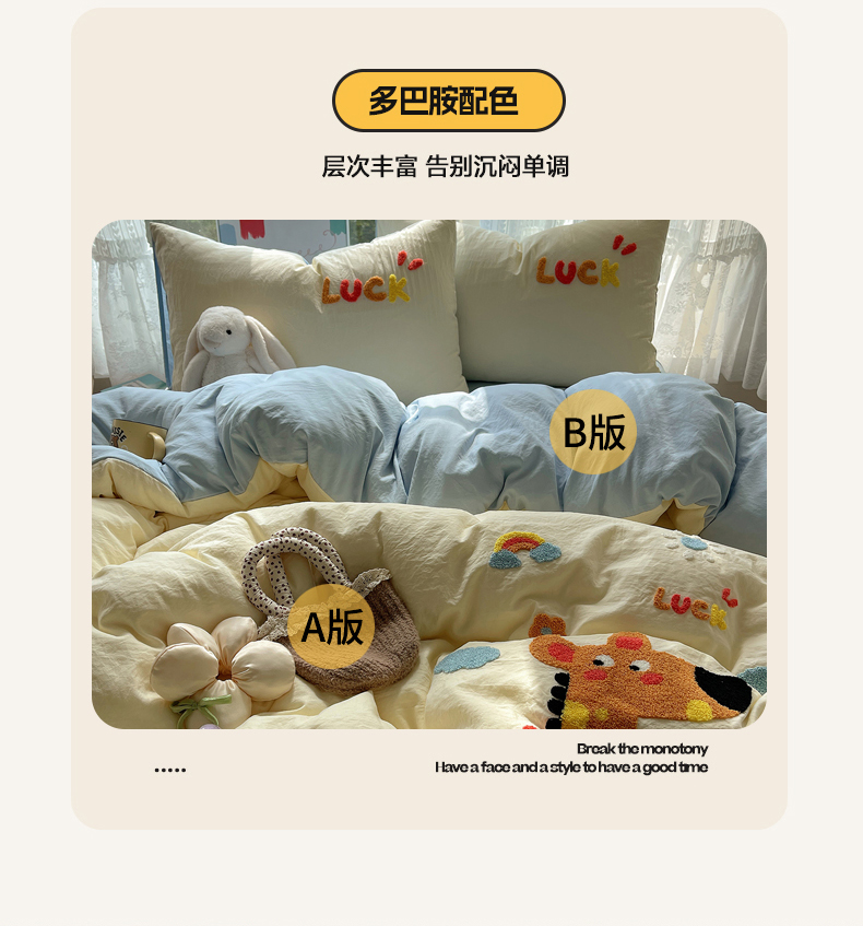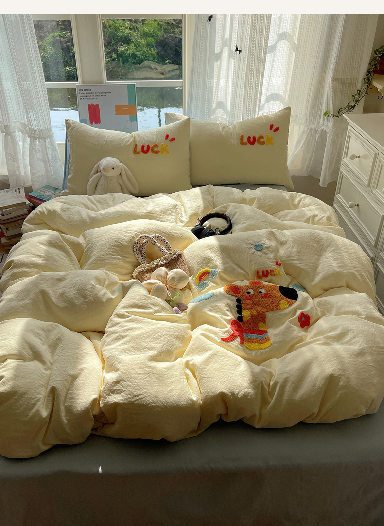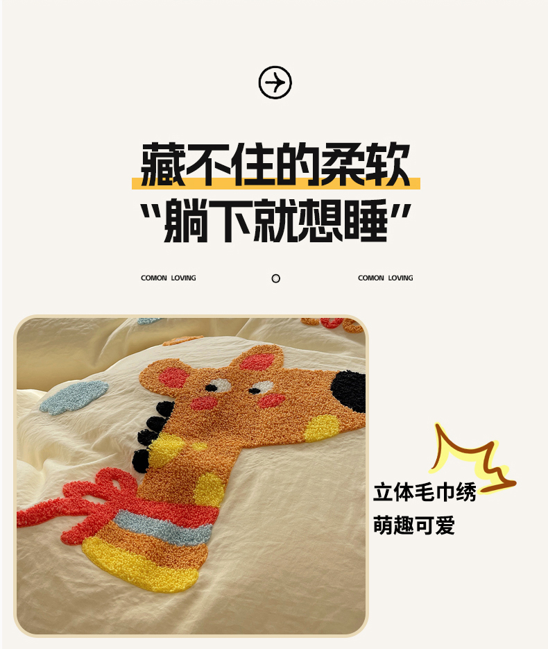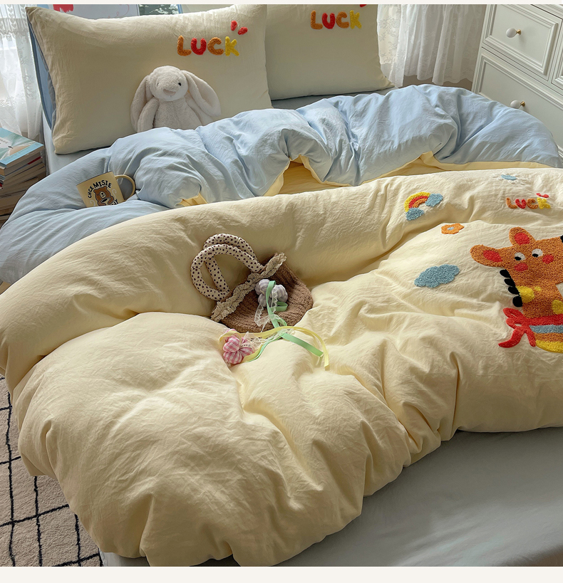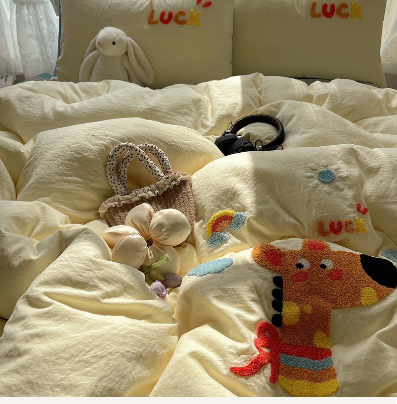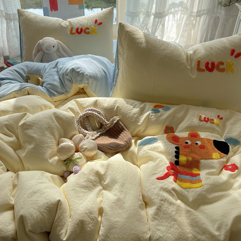 当前位置: 91家纺网 > 商品网购 > 床品套件 > 四件套 > 化纤活性四件套 > 优兰朵 2025新款爆款宿舍可爱水洗棉毛巾绣四件套 彩虹鹿语