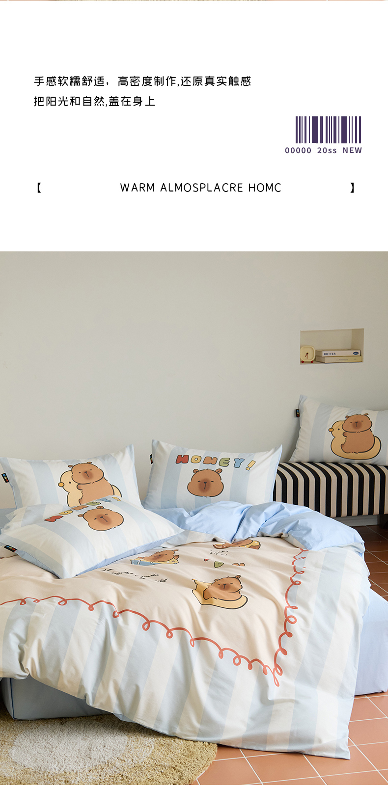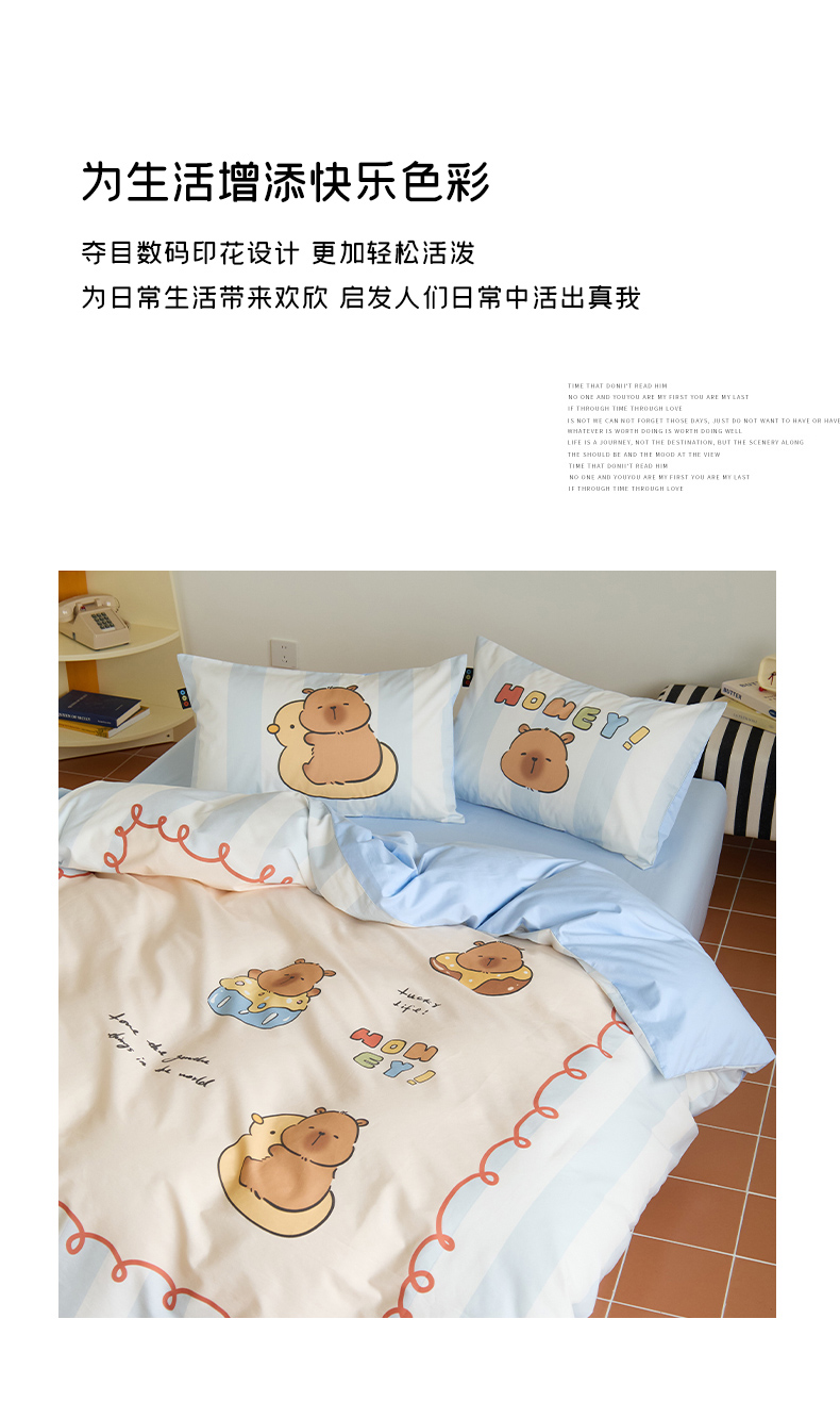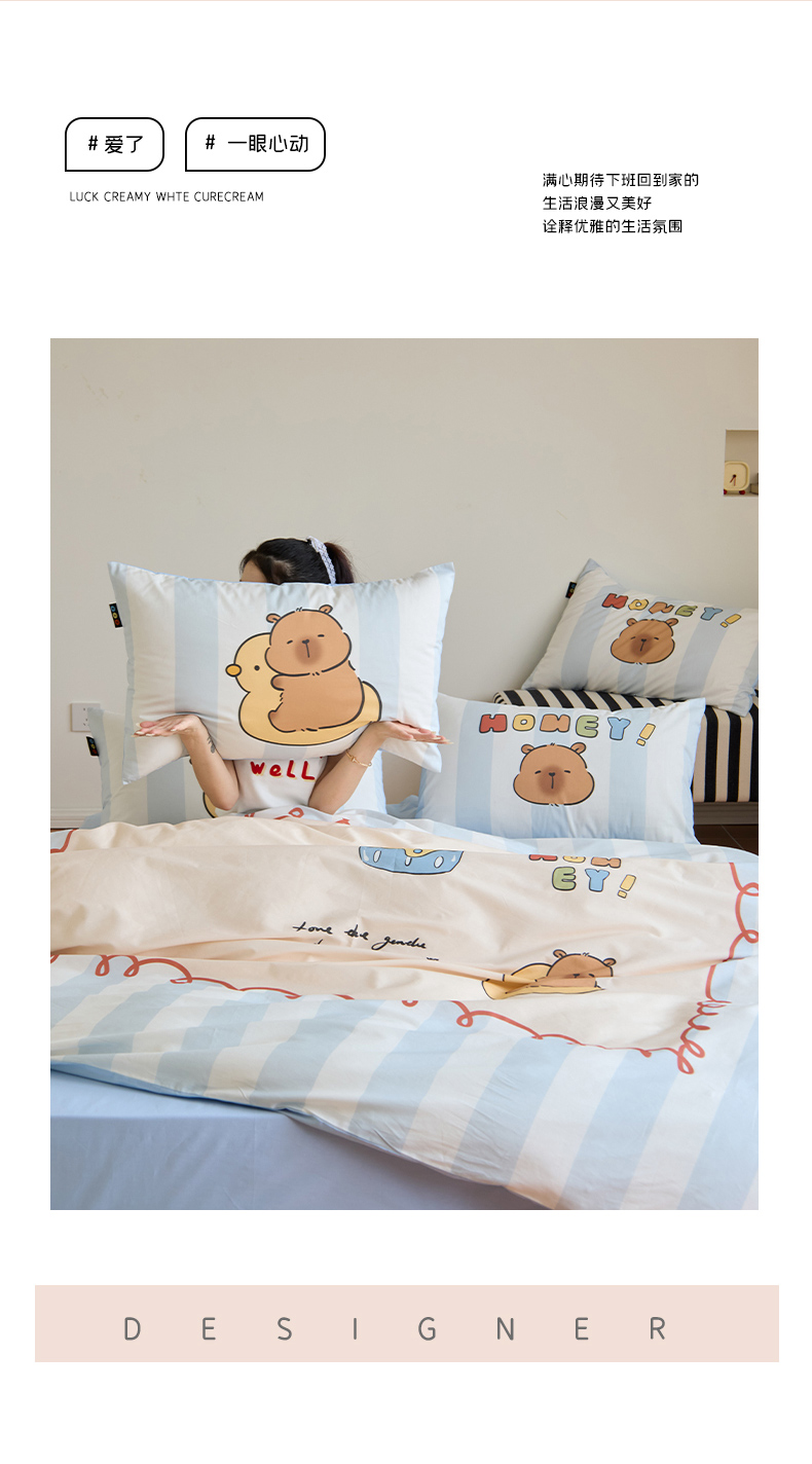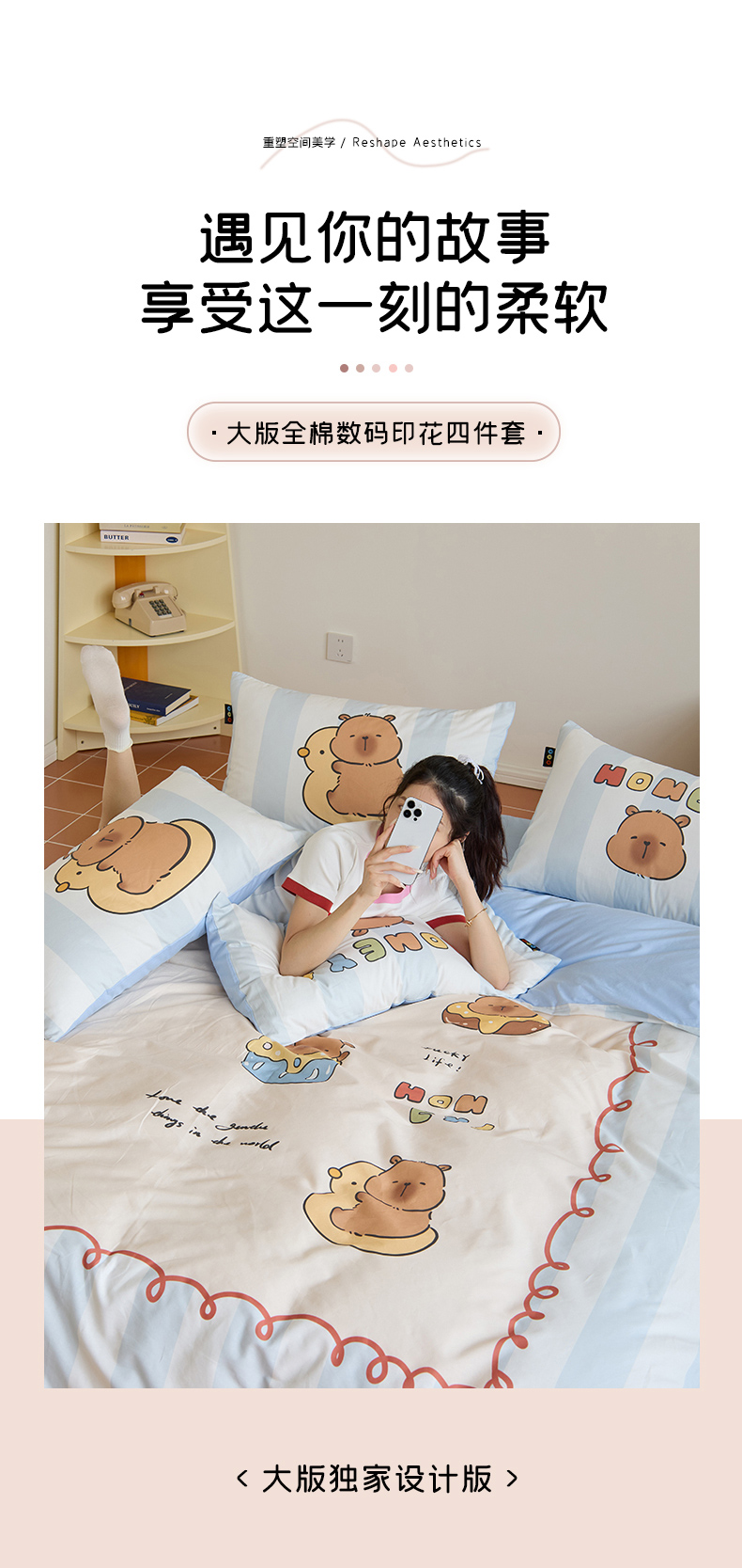 商品名称:RYB红黄兰 开学季2025新款ins设计师原创13372大版卡通数码印花40s全棉纯棉三件套四件套 蛋糕卡皮巴拉
