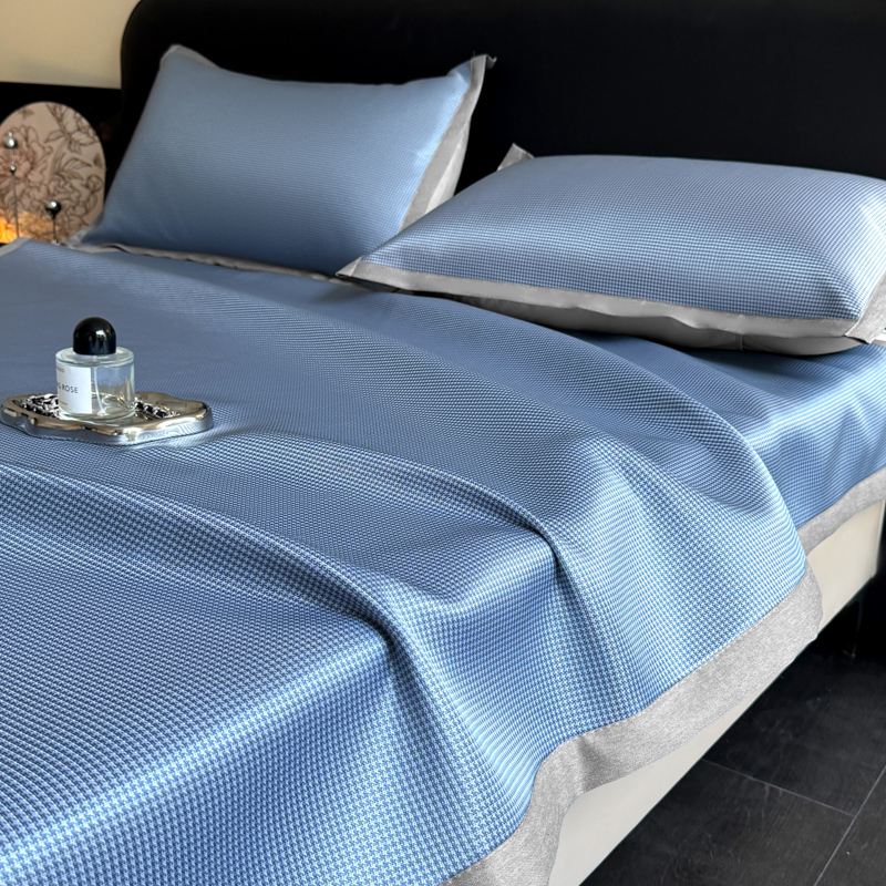 (总)红嘴企鹅2025新款千鸟格提花冰丝凉席(量大可聊)
