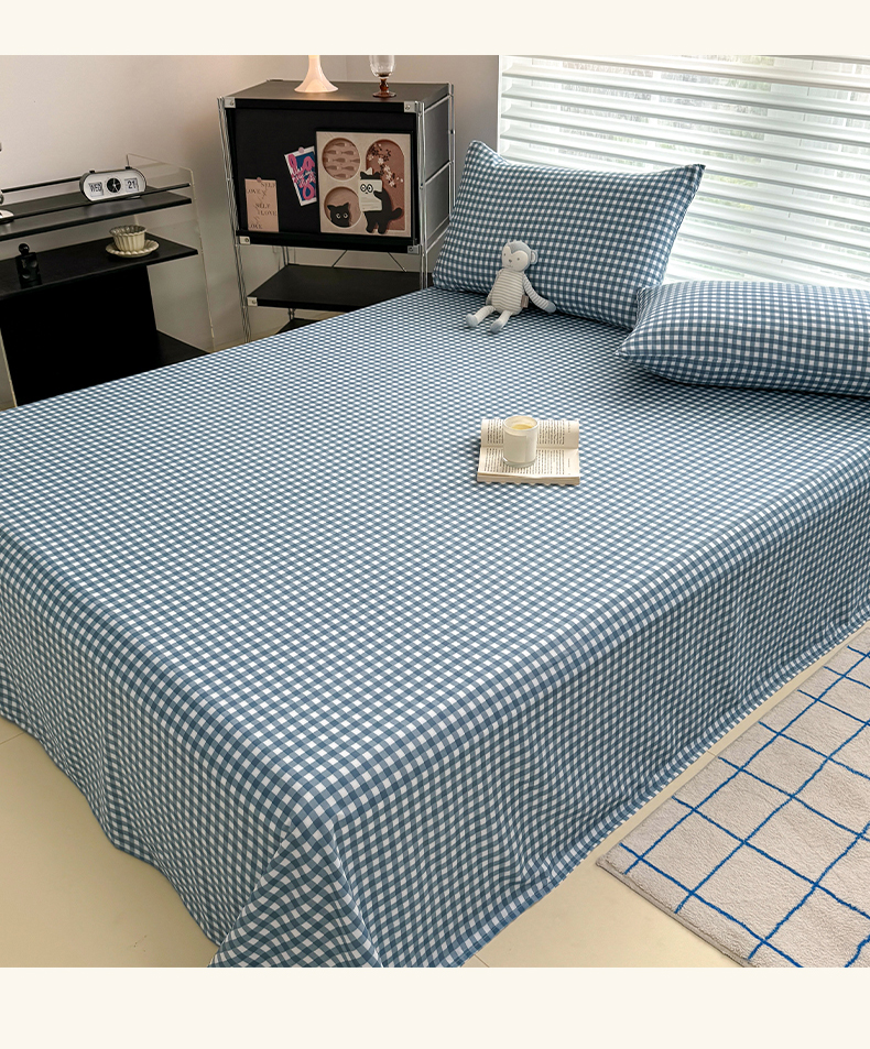 商品名称:十一家居 2025年新款ins无印风A类云朵亲肤水洗棉单床单——眠语系列 豆沙小格