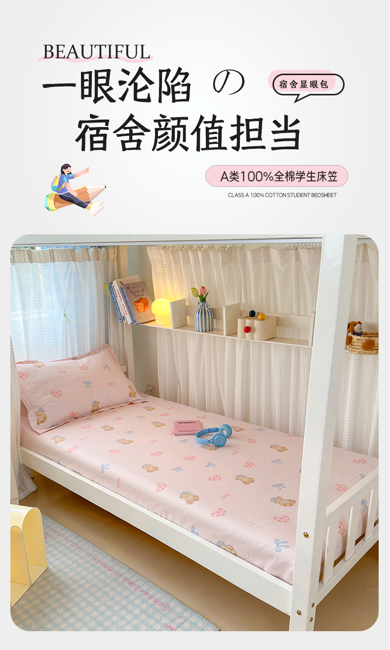 拾物记 2025新款A类全棉纯棉棉印花学生床笠床笠单件单床笠 甜心宝贝