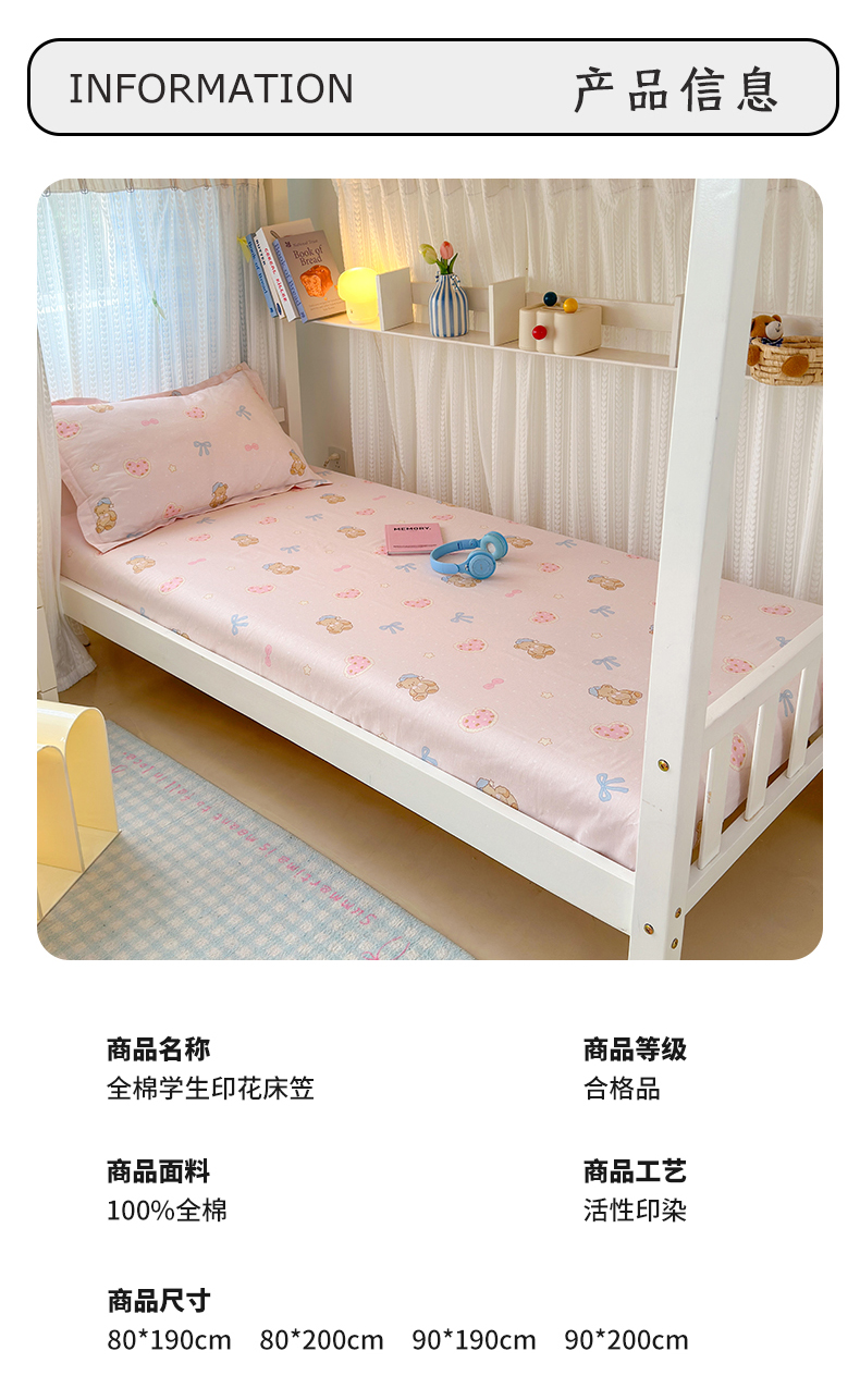 • 91家纺网 家纺一手货源 找家纺 拾物记 2025新款A类全棉纯棉棉印花学生床笠床笠单件单床笠 甜心宝贝