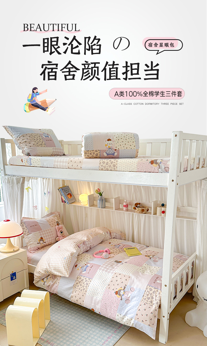 当前位置: 91家纺网 > 商品网购 > 床品套件 > 三件套 > 拾物记 2025新款A类全棉纯棉棉印花学生宿舍三件套上下铺三件套-第二批 快乐聚会
