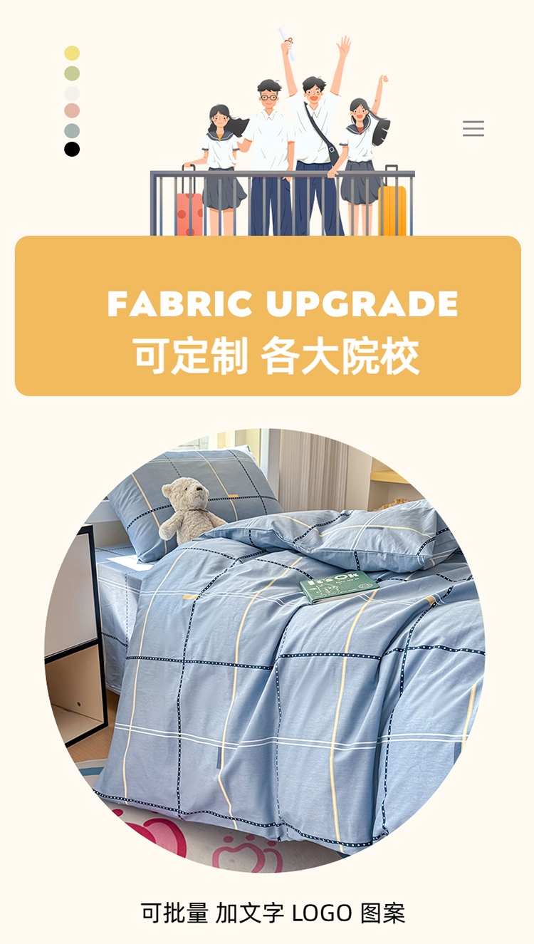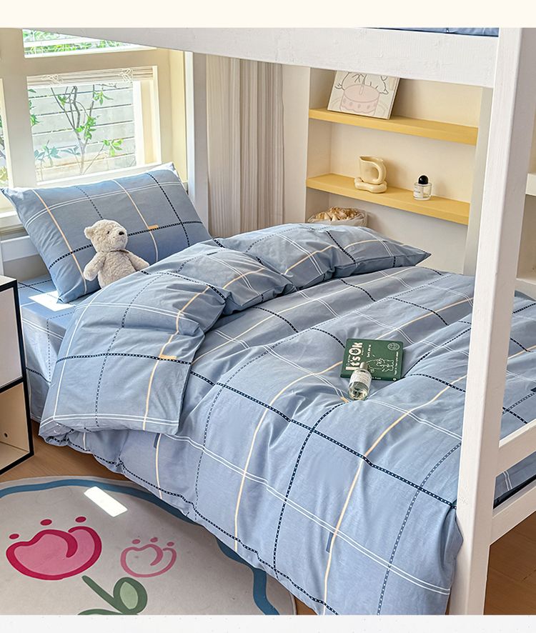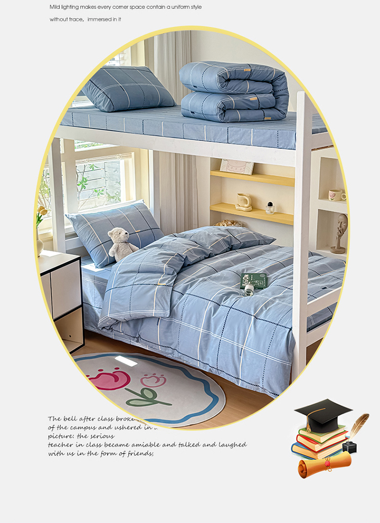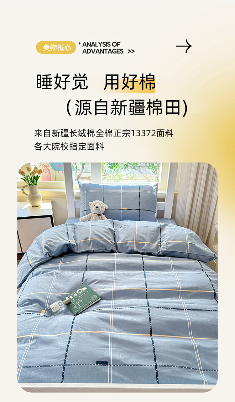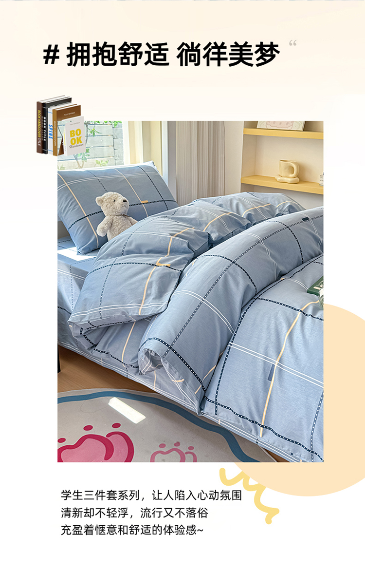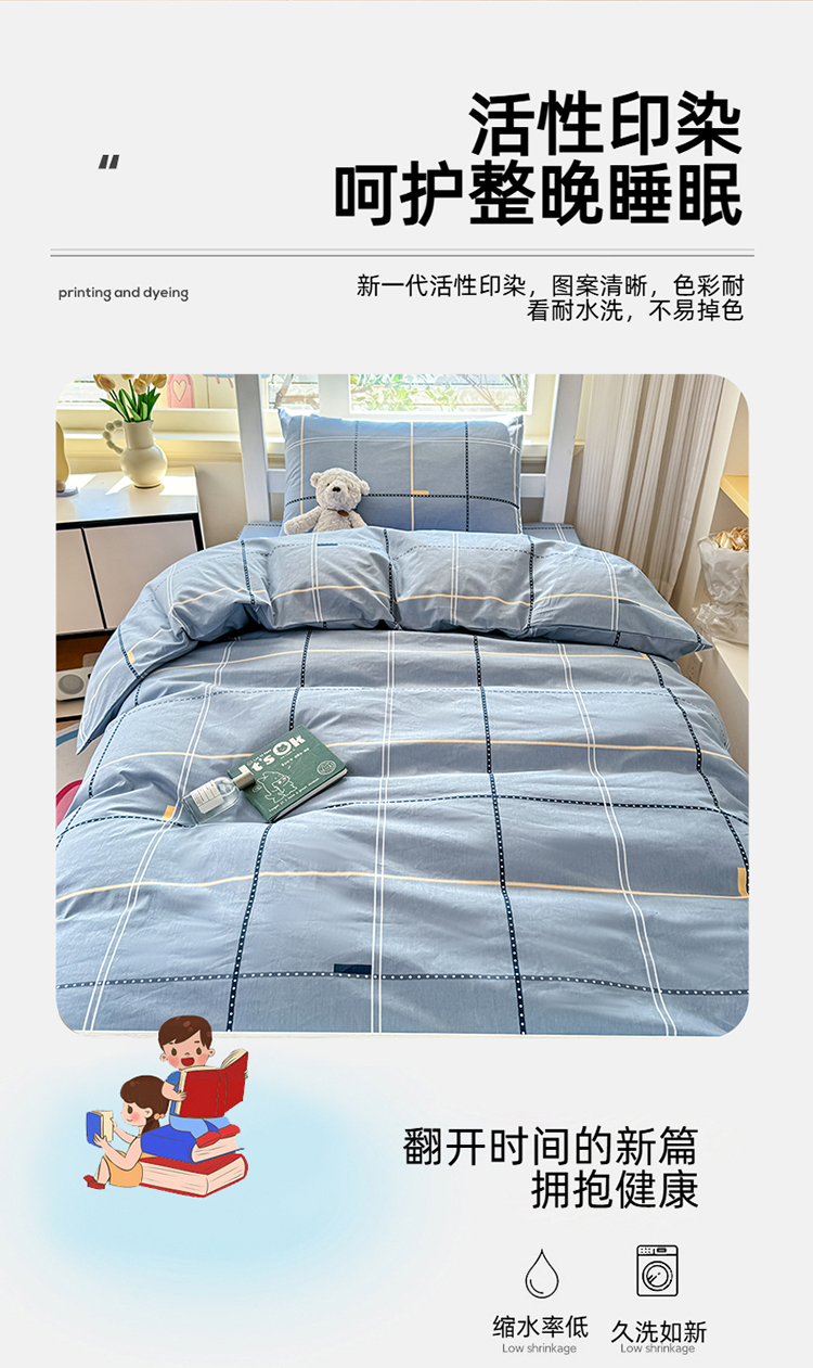 (总)【苏东来】2025简约13372纯棉全棉学生三件套学生季宿舍上下铺全棉纯棉格子印花三件套件单品被套床单枕套