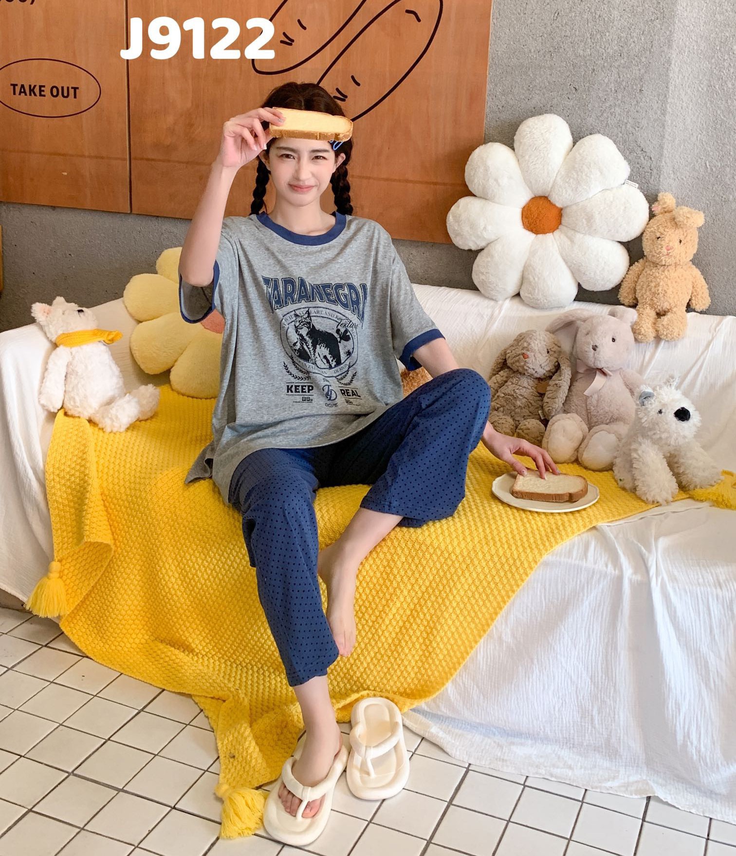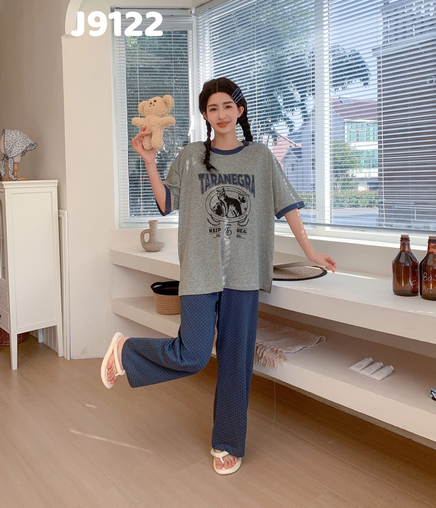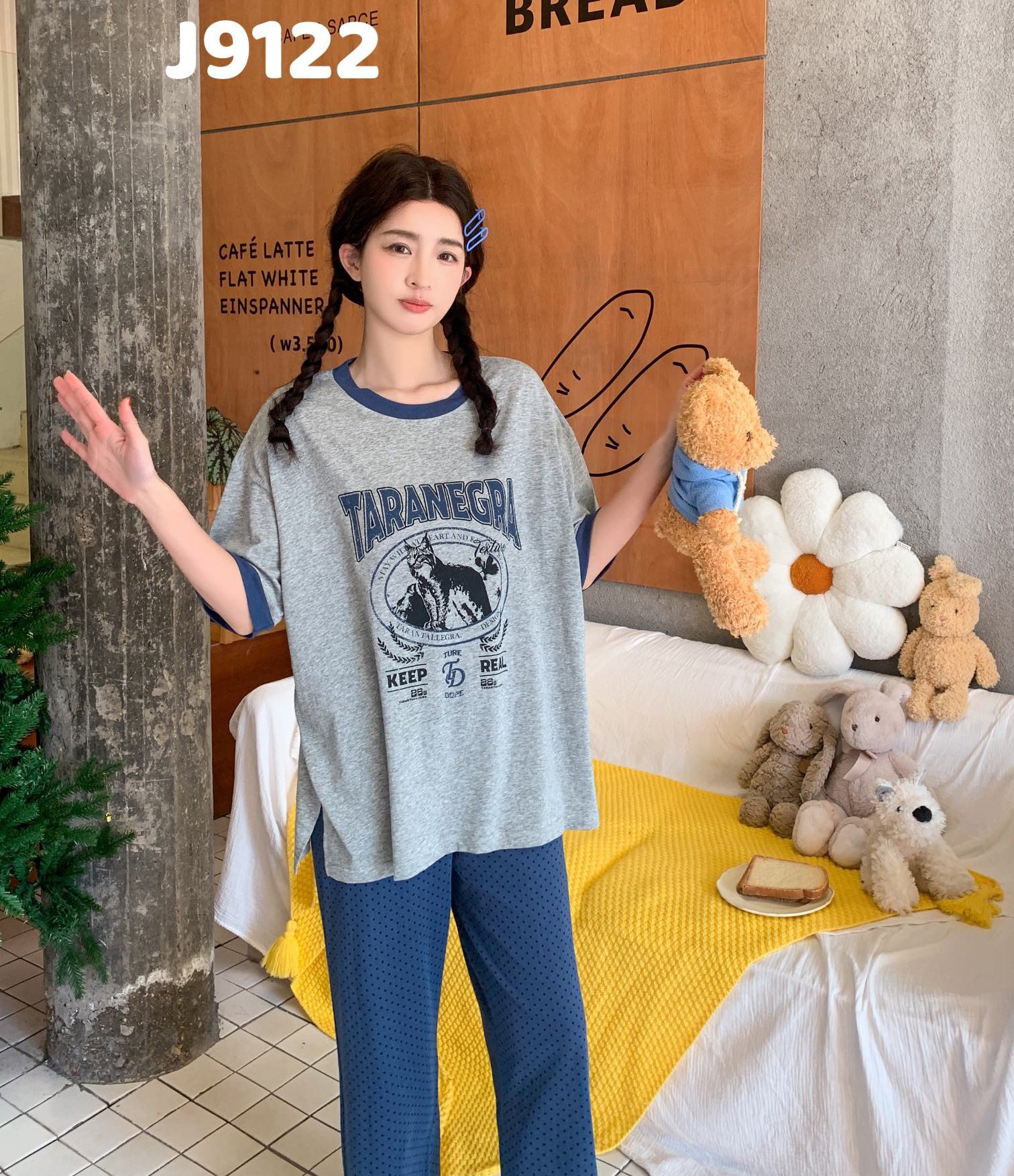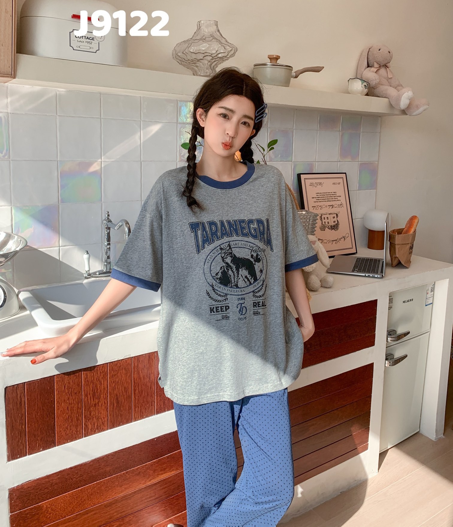 当前位置: 91家纺网 > 商品网购 > 居家日用 > 睡衣/家居服套装 > (总)妍景家居生活馆 2025新款全棉纯棉圆领夏款宽松舒适短袖睡衣套装可外穿卡通家居服套装-佩里游记蓝