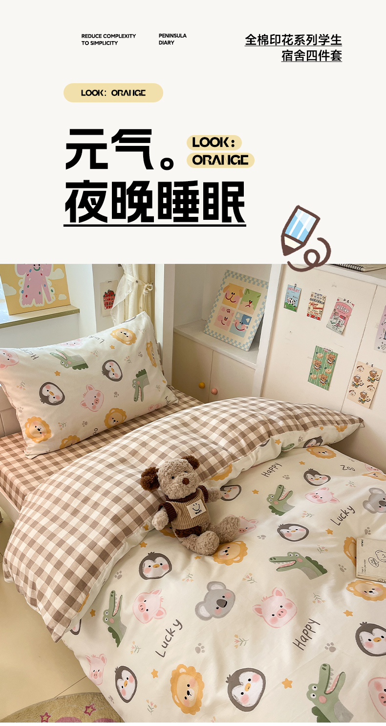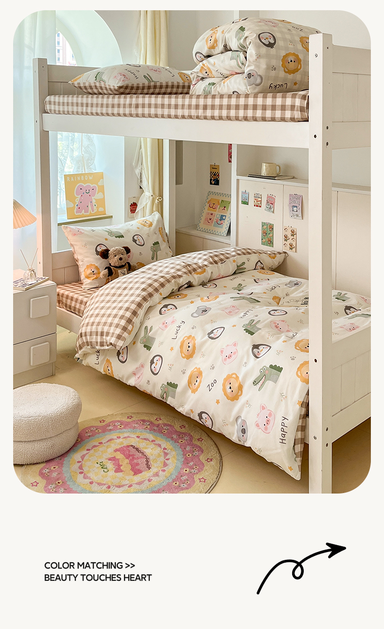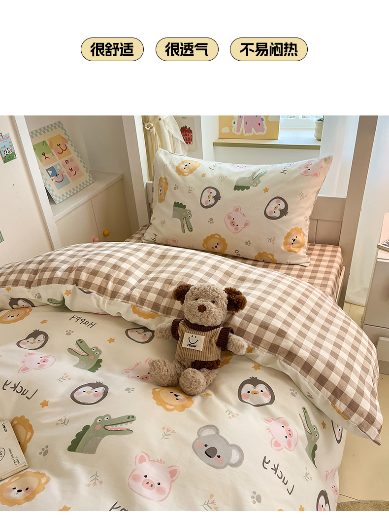 当前位置: 91家纺网 > 商品网购 > 床品套件 > 三件套 > 雅居纺家纺 2025新款全棉纯棉印花系列学生宿舍三四件套上下铺三件套 乐园
