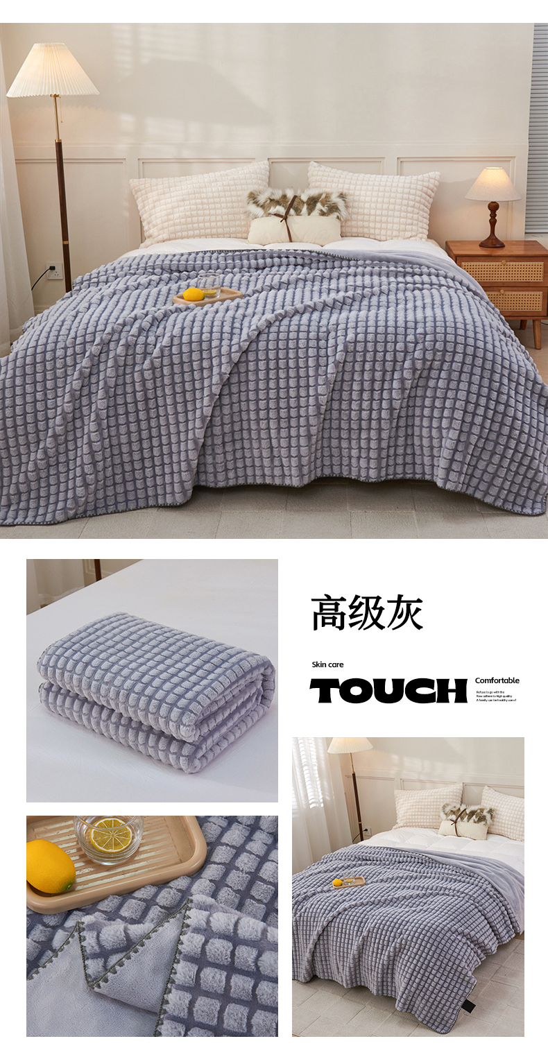 馨米莱家纺2025新款提花兔毛复合毯 高级灰