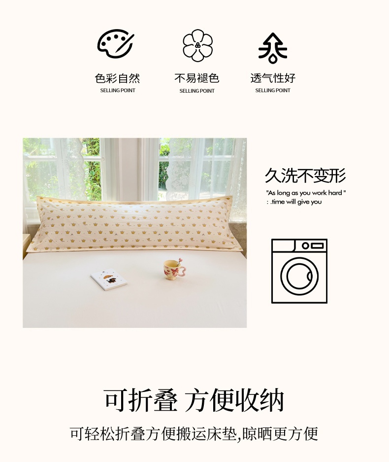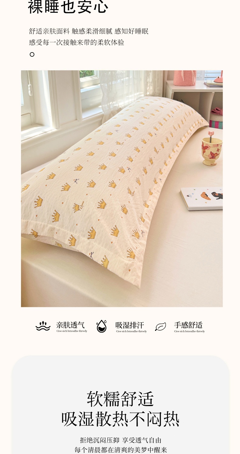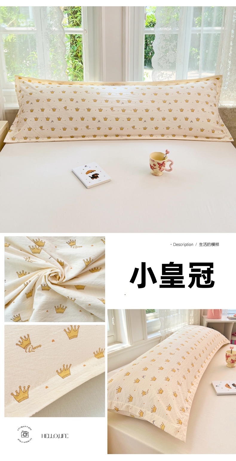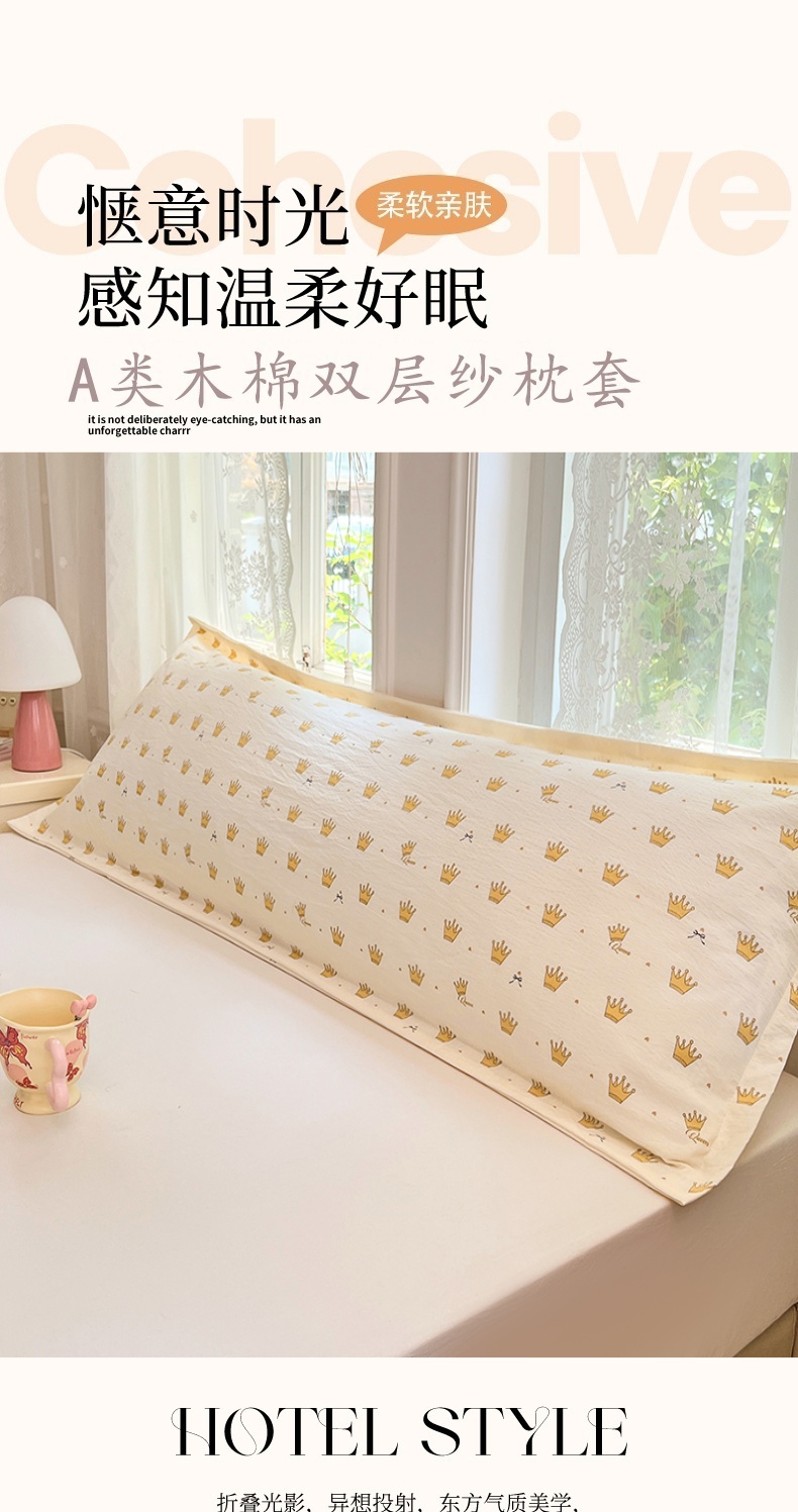商品名称:梦舒羽 2025新款云感双层纱印花双人枕套情侣1.5m枕芯套1.8床枕头 小皇冠