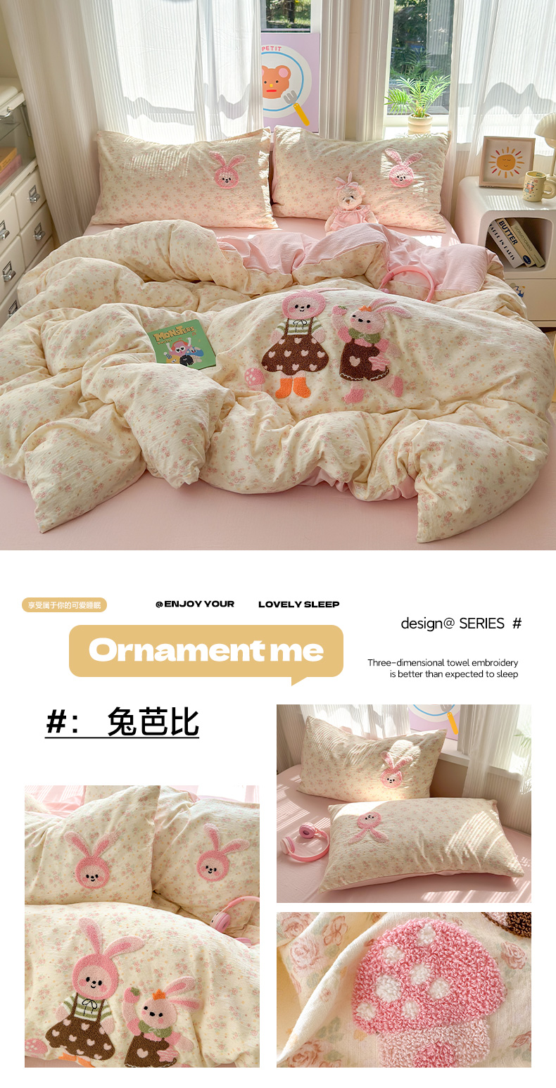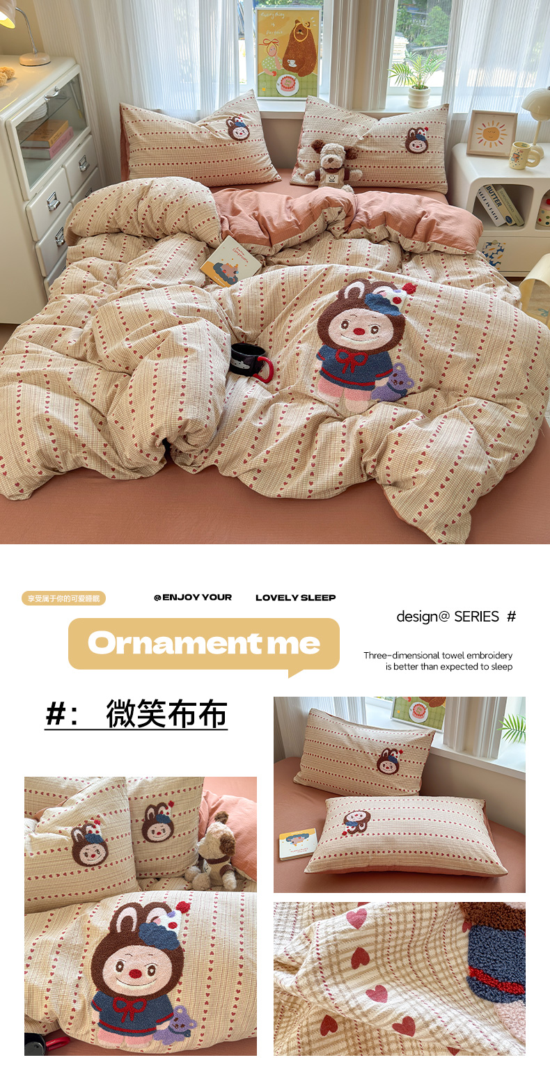 当前位置: 91家纺网 > 商品网购 > 床品套件 > 四件套 > 其它四件套 > 罗亿家纺 2025新款云感双层纱卡通毛巾绣四件套(小清新系列)) 夏日小熊