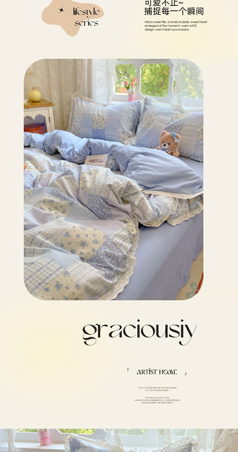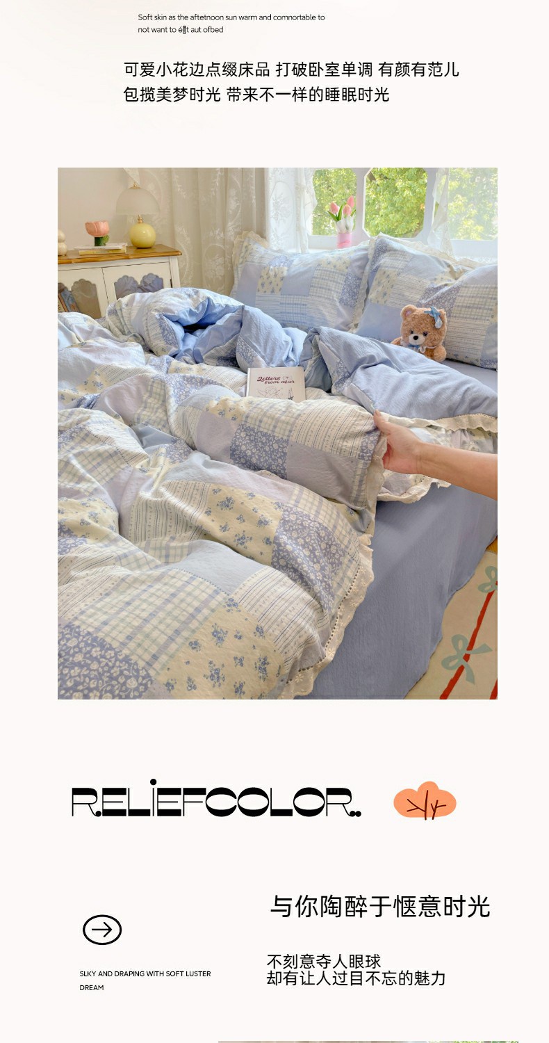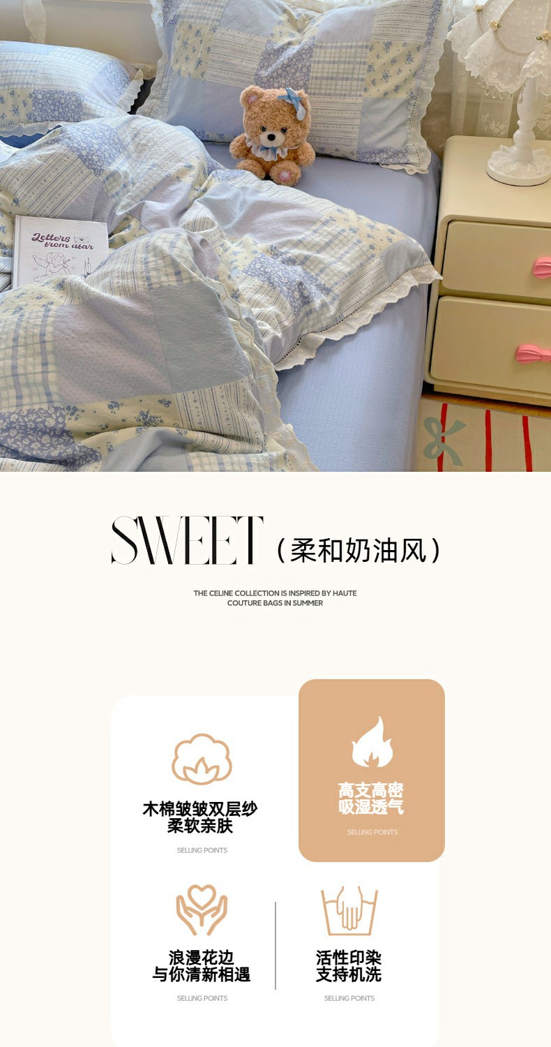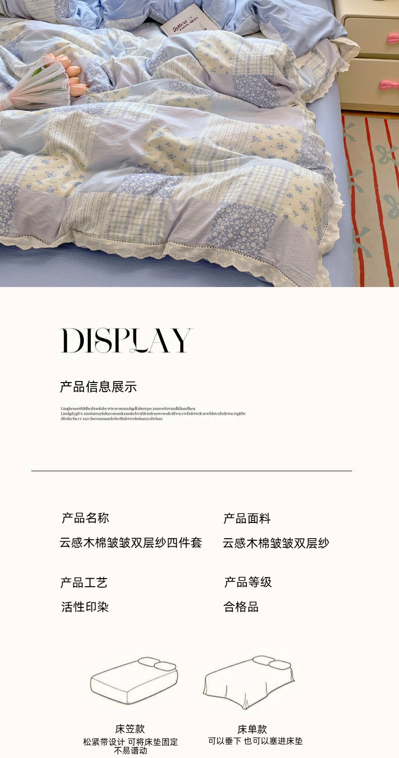 当前位置: 91家纺网 > 商品网购 > 床品套件 > 四件套 > 全棉普通四件套 > 优佳优品 2025新款A类云感木棉皱皱双层纱全棉镂空花边四件套(提供买家秀) 百福之梦