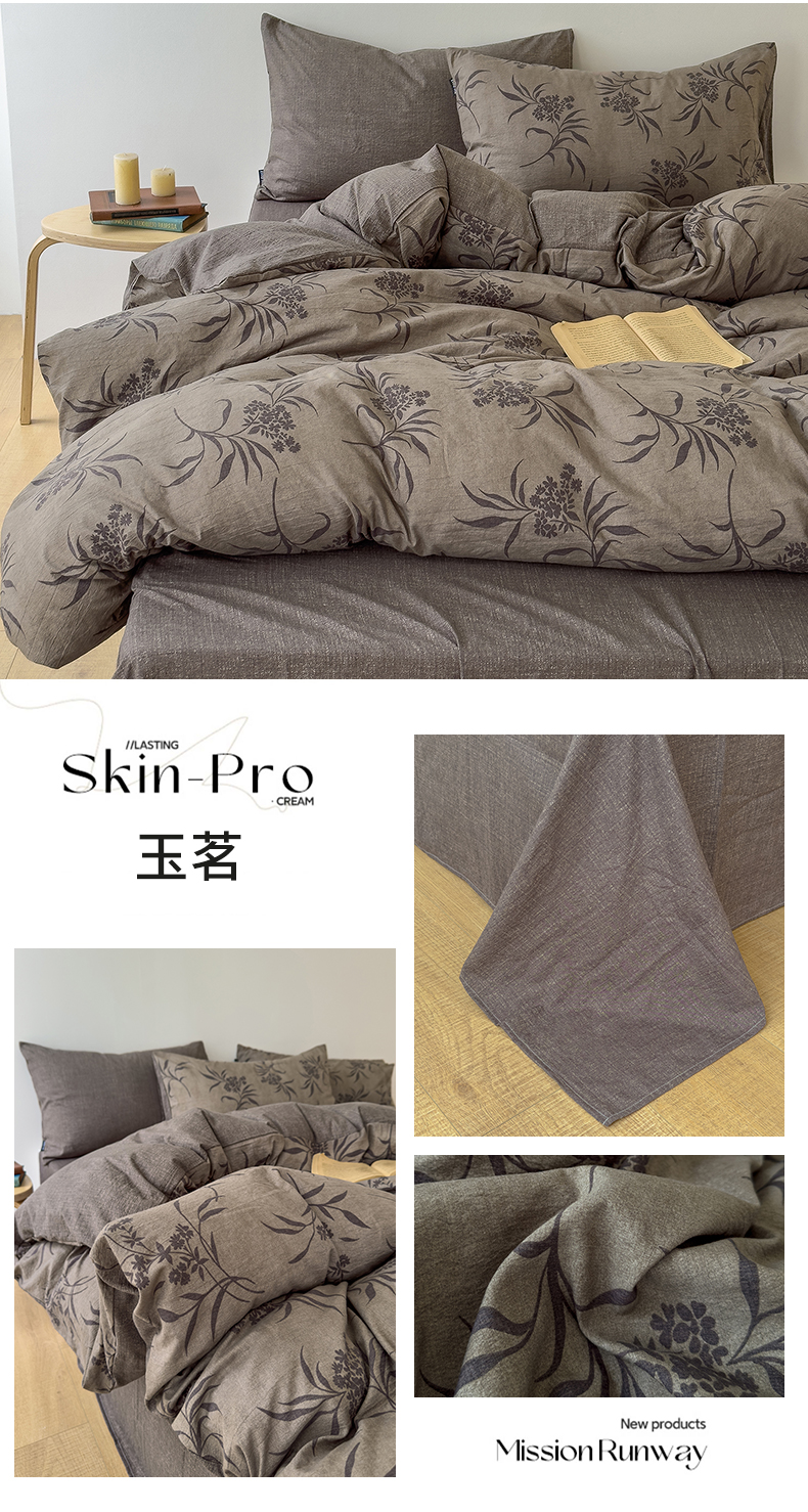 竹合家纺 2025秋冬新品爆款加厚高克重复古风皱皱印花四件套 玉茗
