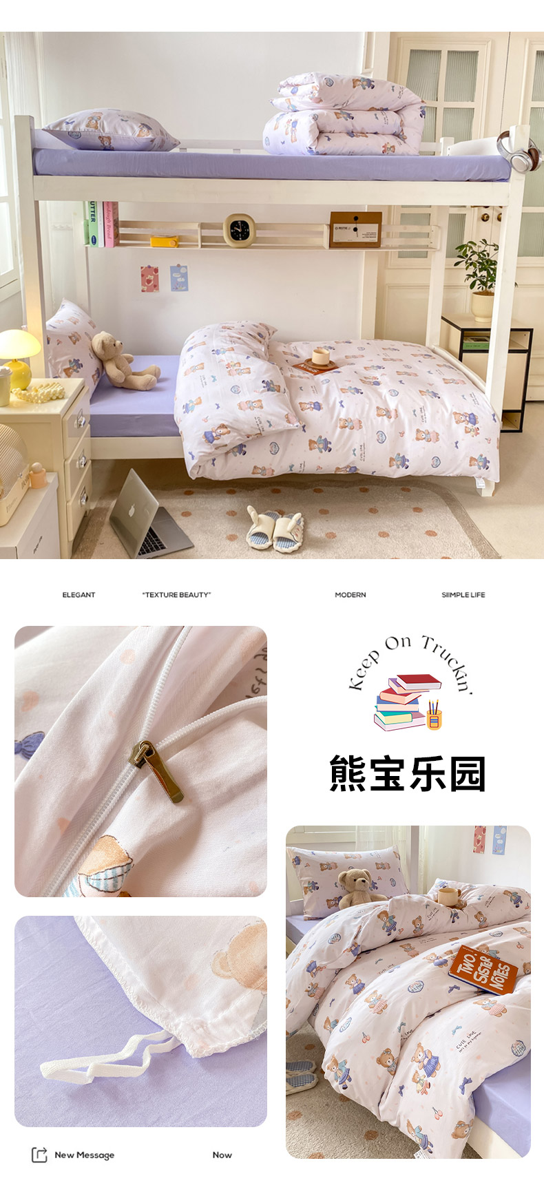 当前位置: 91家纺网 > 商品网购 > 床品套件 > 三件套 > 芷凡家纺 2025新款水洗棉双层纱学生三件套四件套学生宿舍上下铺三件套 兰溪园