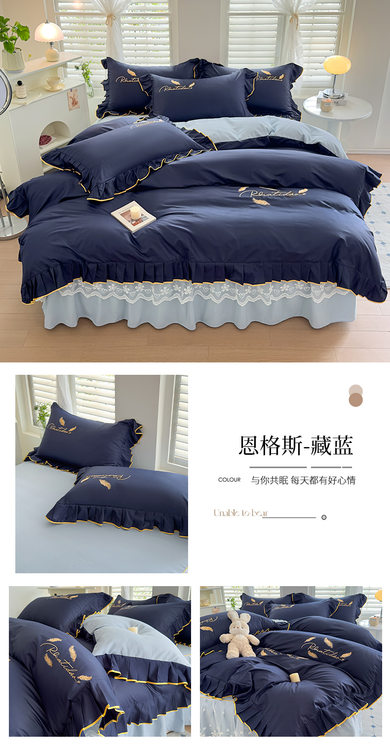当前位置: 91家纺网 > 商品网购 > 床品套件 > 四件套 > 水洗棉四件套 > 柔享家(原芷澜家纺) 2025新款水洗棉磨毛系列四件套-恩格斯 藏蓝+天际蓝