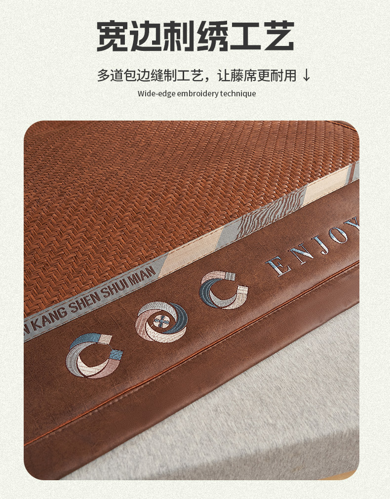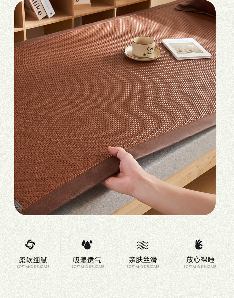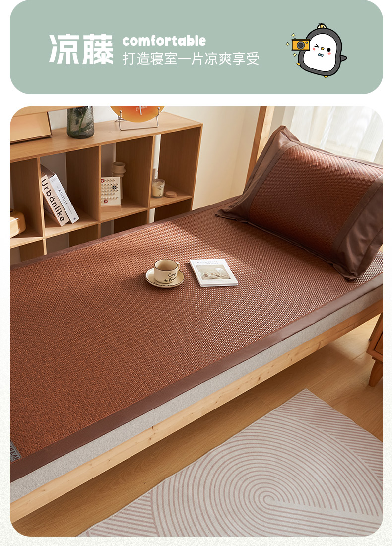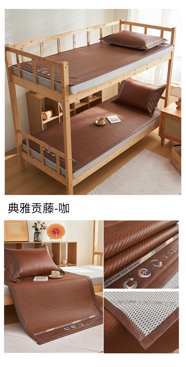 商品名称:鑫琪莱家纺 2025新款学生PE凉感藤席 典雅贡藤-咖