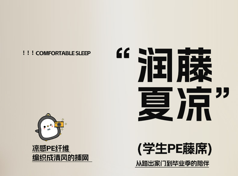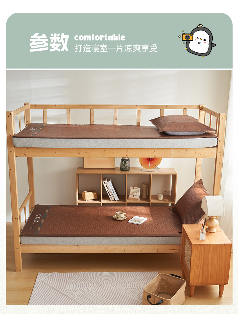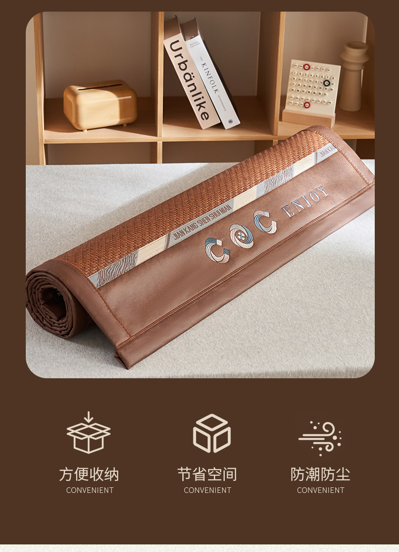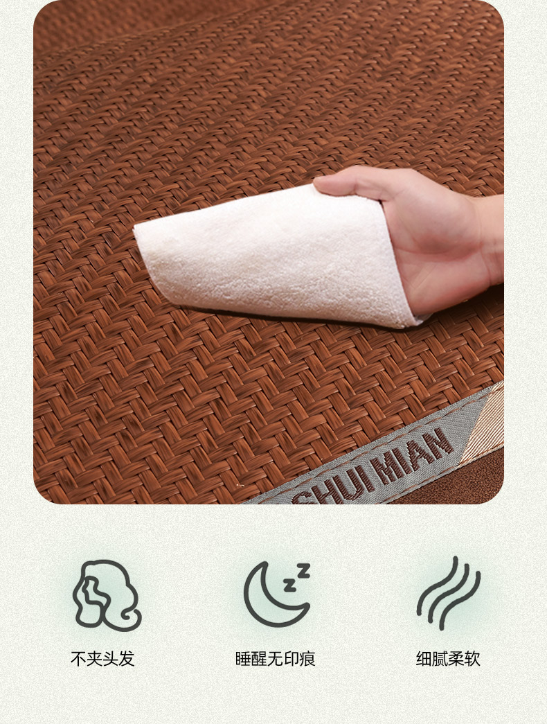 商品名称:鑫琪莱家纺 2025新款学生PE凉感藤席 典雅贡藤-咖