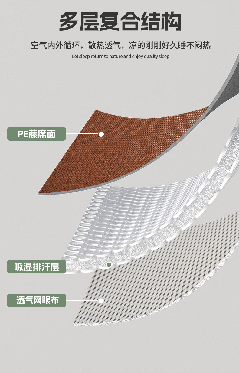 鑫琪莱家纺 2025新款学生PE凉感藤席 典雅贡藤-咖
