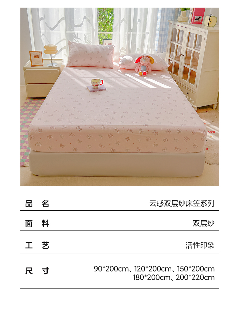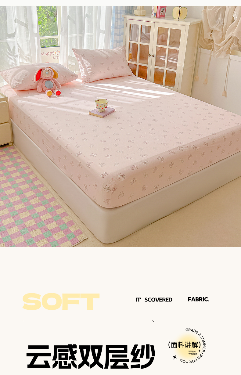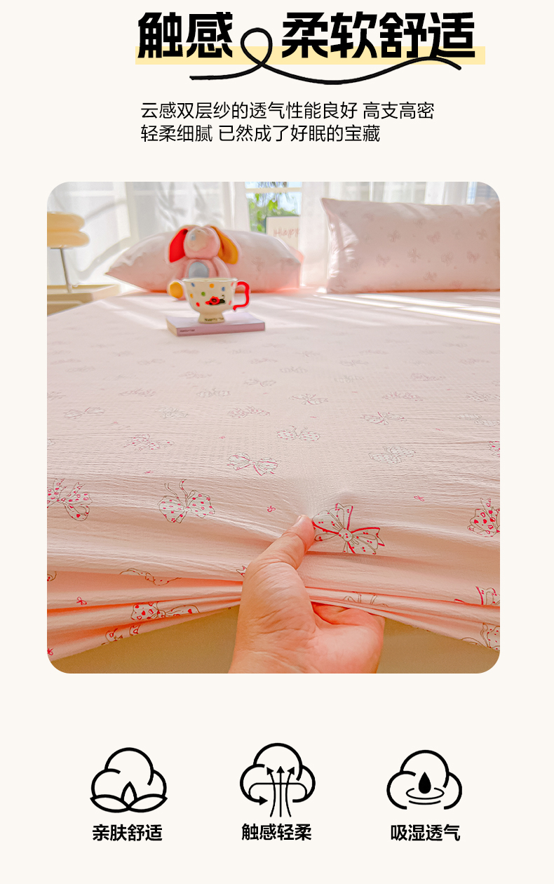 • 91家纺网 家纺一手货源 找家纺 韩巢家纺 2025新款卡通双层纱床笠单品床笠床笠单件热销款防滑床单床套枕套三件套 心愿