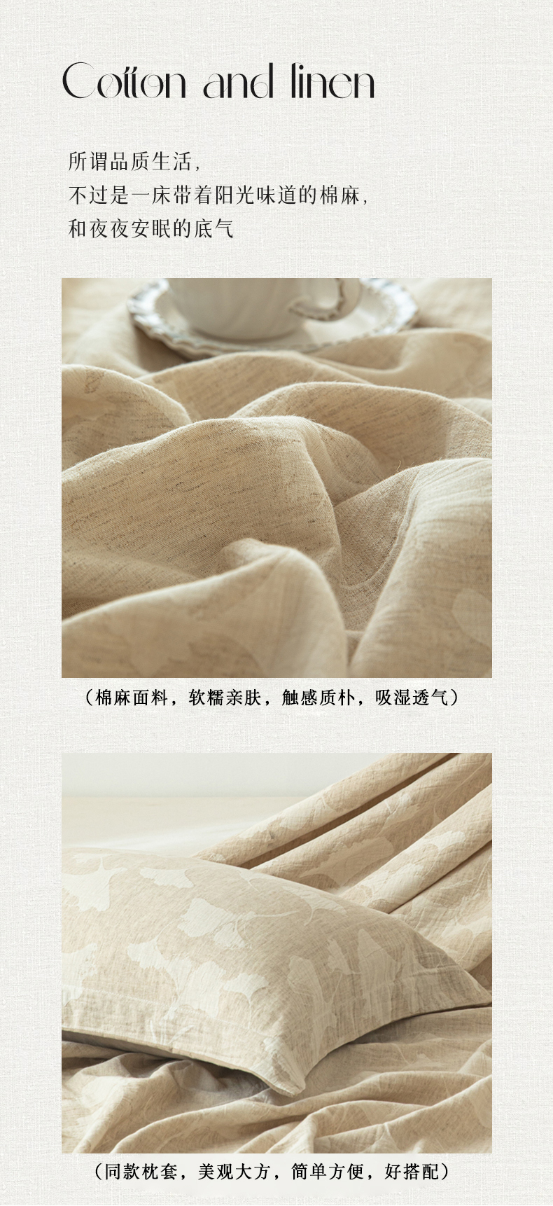 眠博士 2025新款A类棉麻提花床单单床单床单单件 棉麻床单-银杏叶