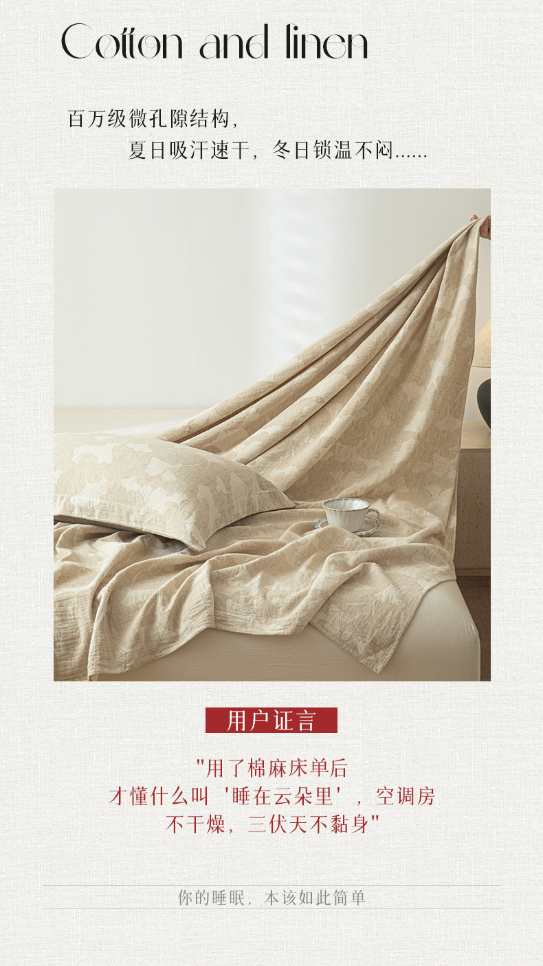 当前位置: 91家纺网 > 商品网购 > 床上用品 > 床单 > 眠博士 2025新款A类棉麻提花床单单床单床单单件 棉麻床单-银杏叶