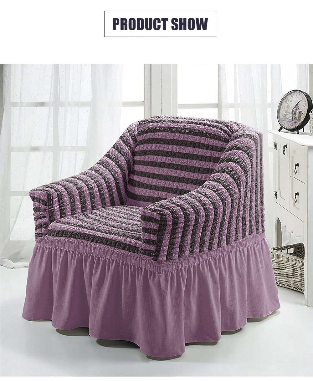 商品名称:布兰鸟【沙发套】 2025新款泡泡沙发套【英文裙摆款】单人沙发风格 双色紫