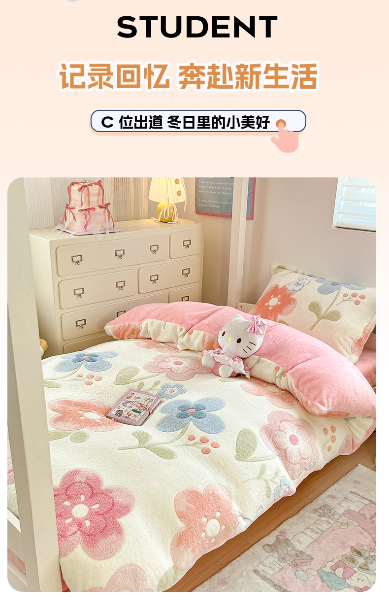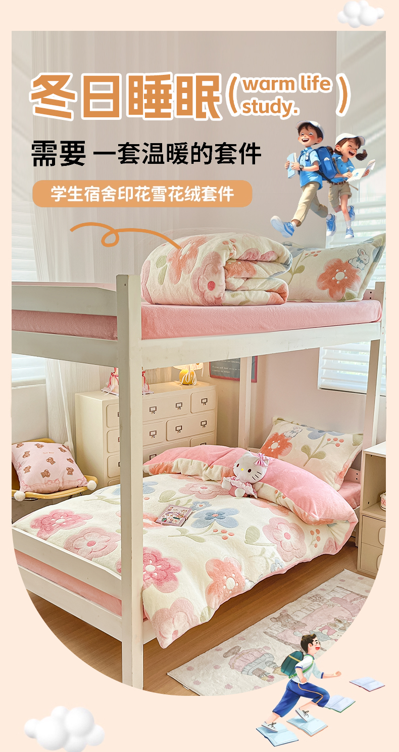 当前位置: 91家纺网 > 商品网购 > 床品套件 > 四件套 > 其它四件套 > 川悦生活 2025新款立体雪花绒印花四件套学生床系列二场景一 半眠小兔