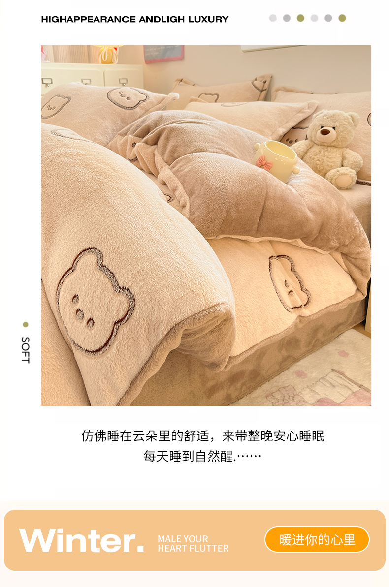 当前位置: 91家纺网 > 商品网购 > 床品套件 > 四件套 > 其它四件套 > 川悦生活 2025新款立体雪花绒印花大床四件套系列二场景一 曲奇小熊