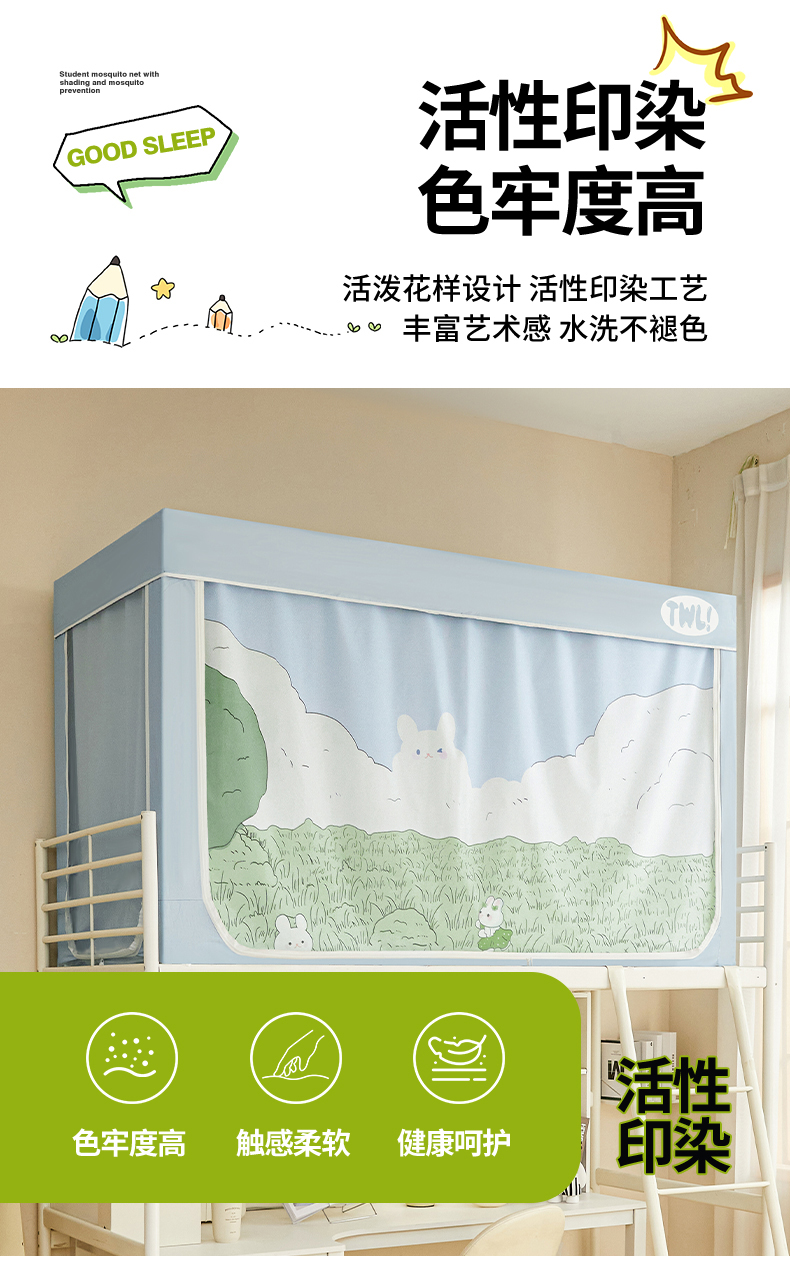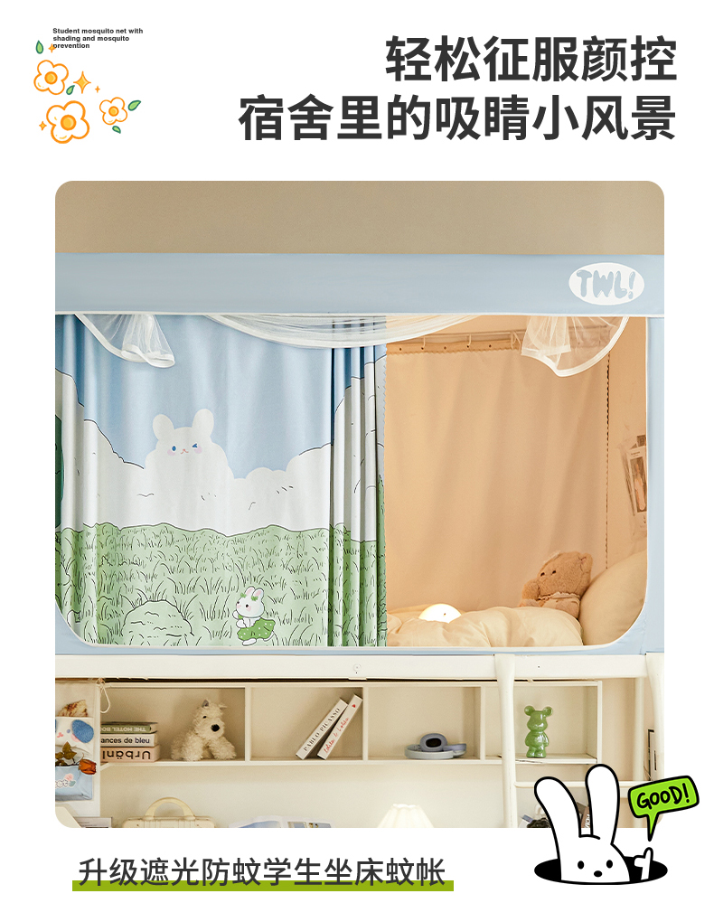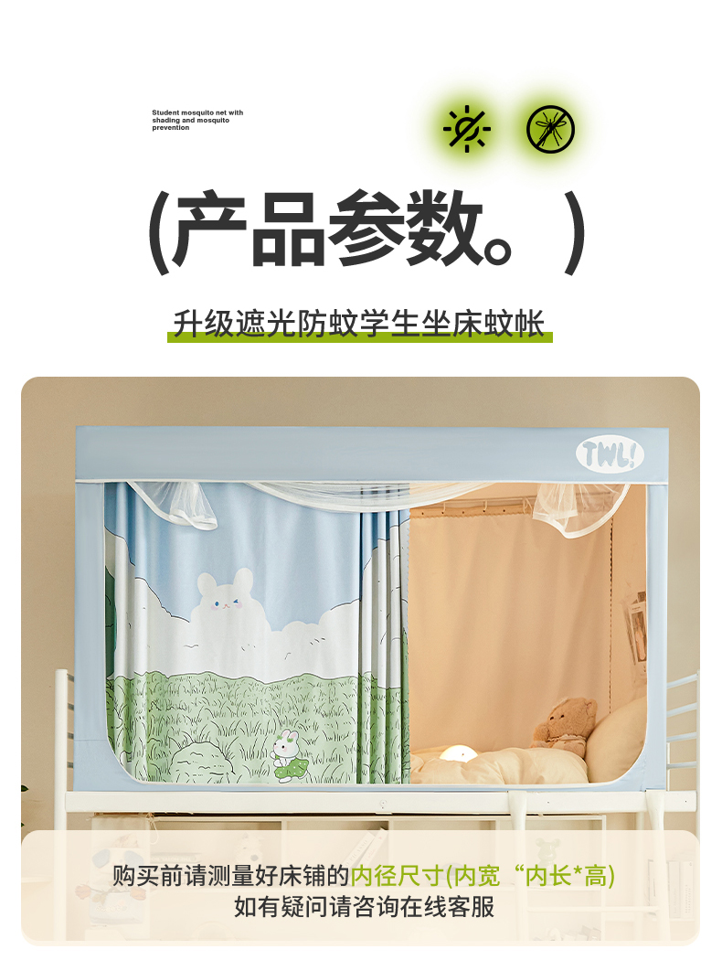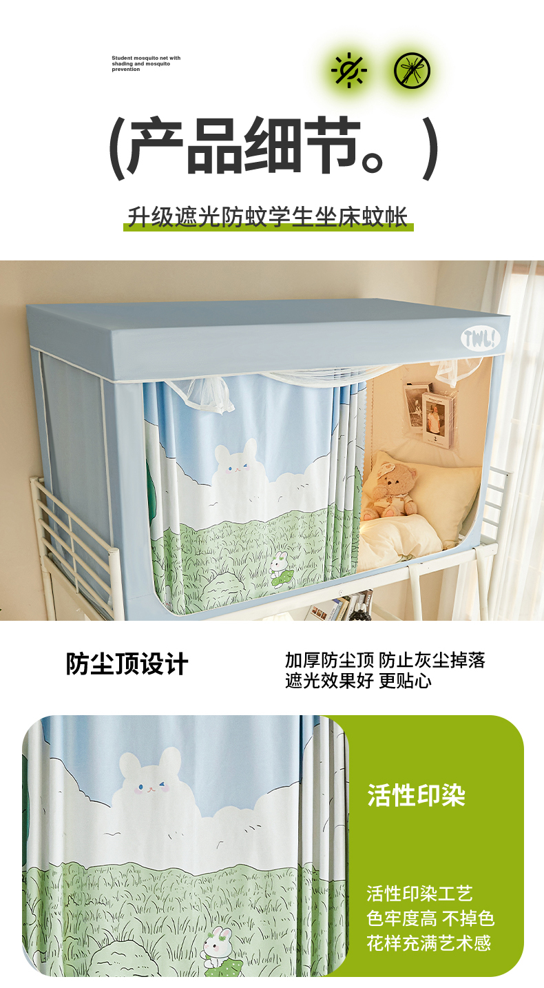 当前位置: 91家纺网 > 商品网购 > 床上用品 > 蚊帐 > 学生蚊帐 > 青竹苑 2025新款植绒强遮光印花学生坐床蚊帐 田野里的兔兔