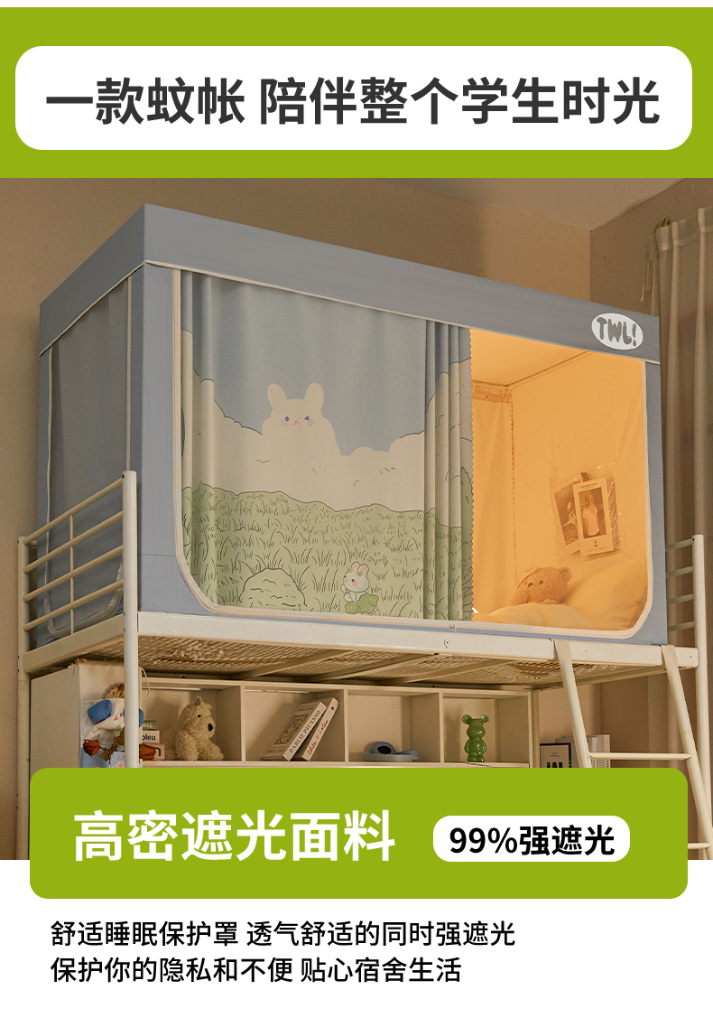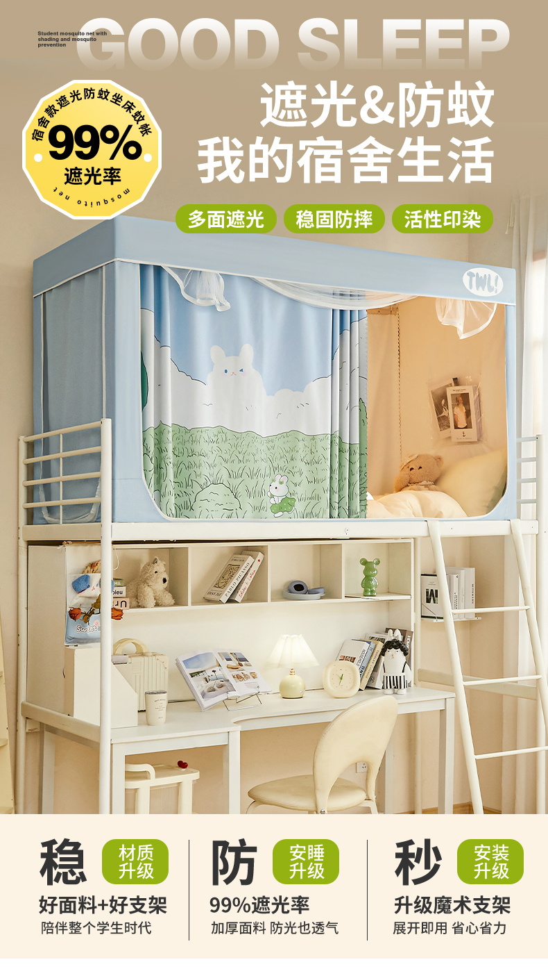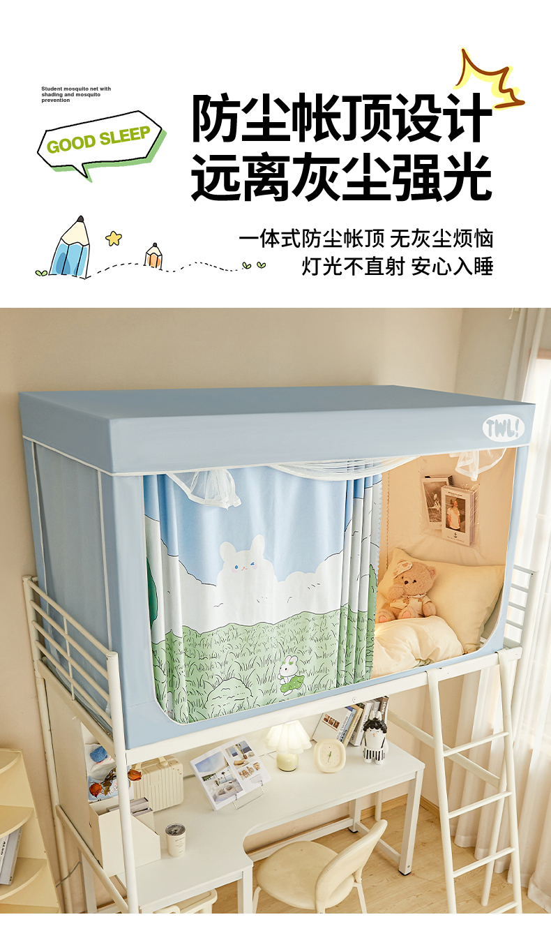 当前位置: 91家纺网 > 商品网购 > 床上用品 > 蚊帐 > 学生蚊帐 > 青竹苑 2025新款植绒强遮光印花学生坐床蚊帐 田野里的兔兔