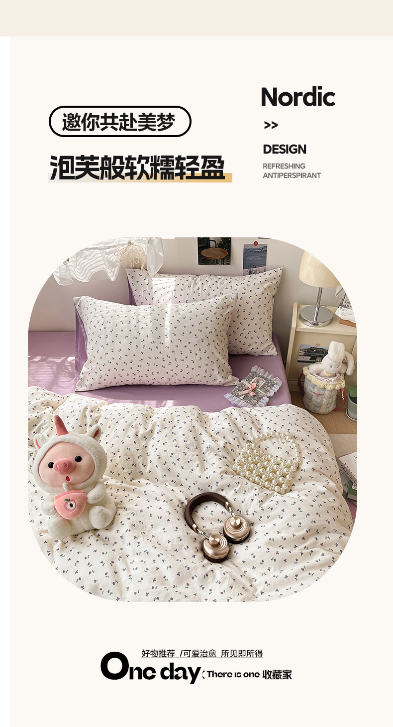 当前位置: 91家纺网 > 商品网购 > 床品套件 > 四件套 > 水洗棉四件套 > 彩韵家纺 2025新款水洗双层纱双拼碎花四件套 小花朵朵