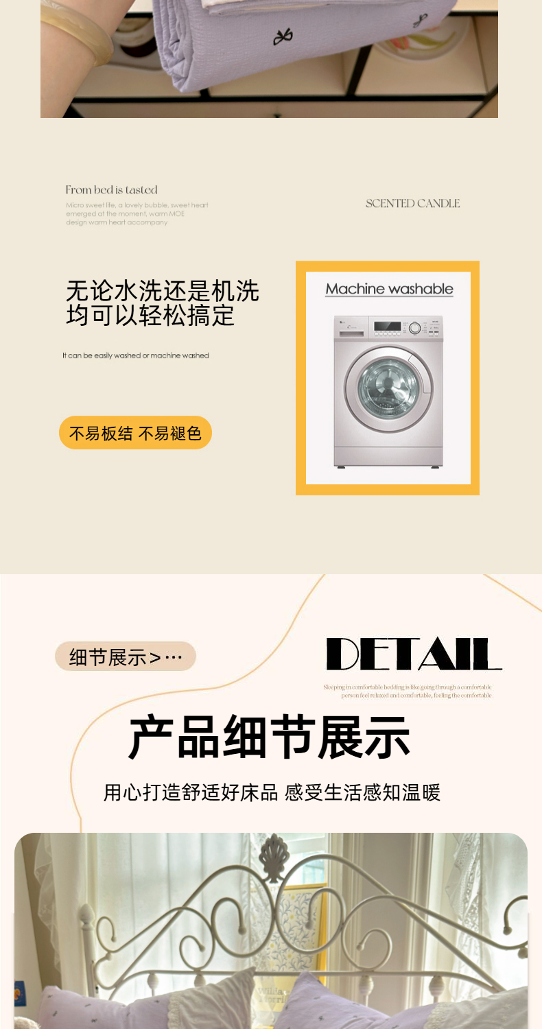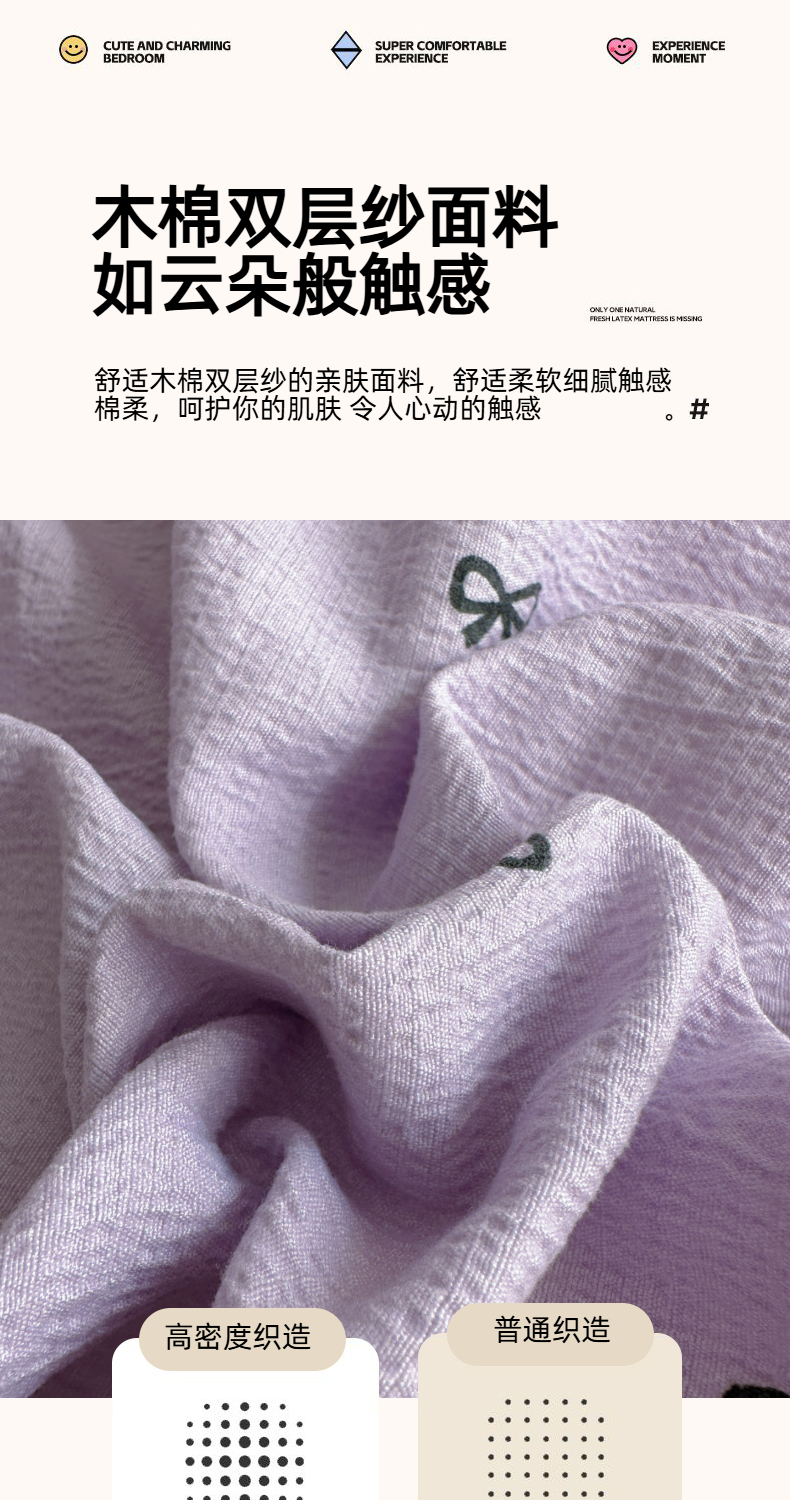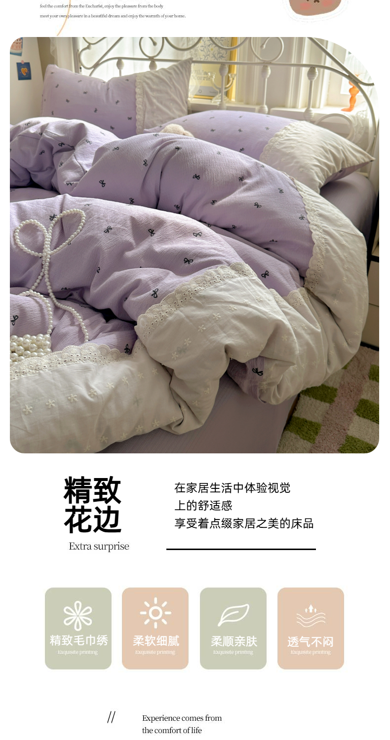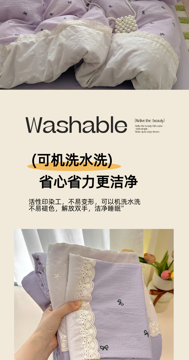 当前位置: 91家纺网 > 商品网购 > 床品套件 > 四件套 > 双层纱四件套 > 思诺羽床笠 2025新款A类法式小清新皱皱纱花边蕾丝水洗棉床上四件套宿舍床笠三件套 紫色浪漫