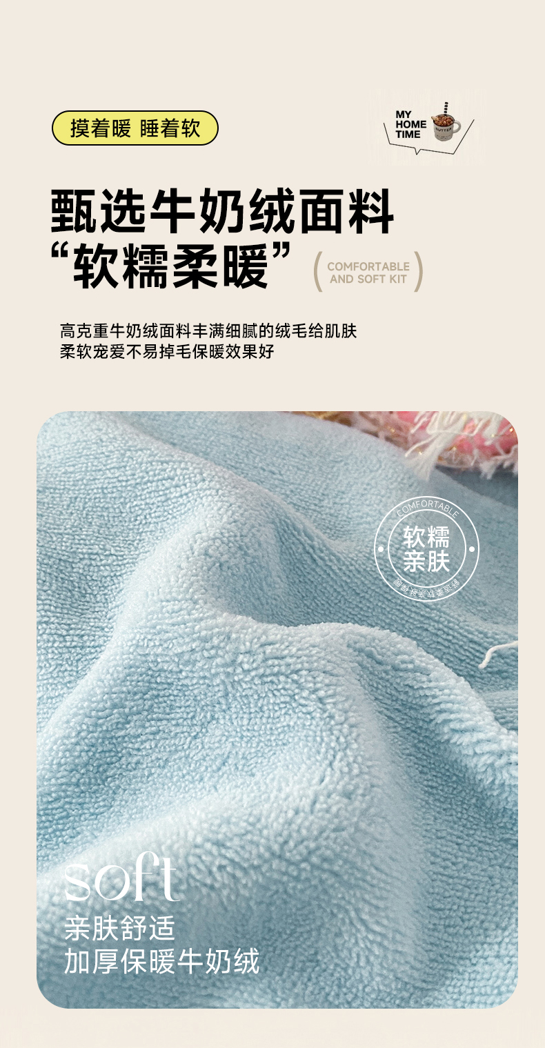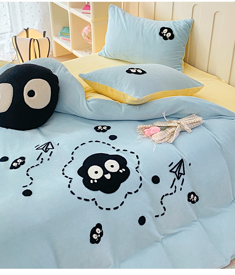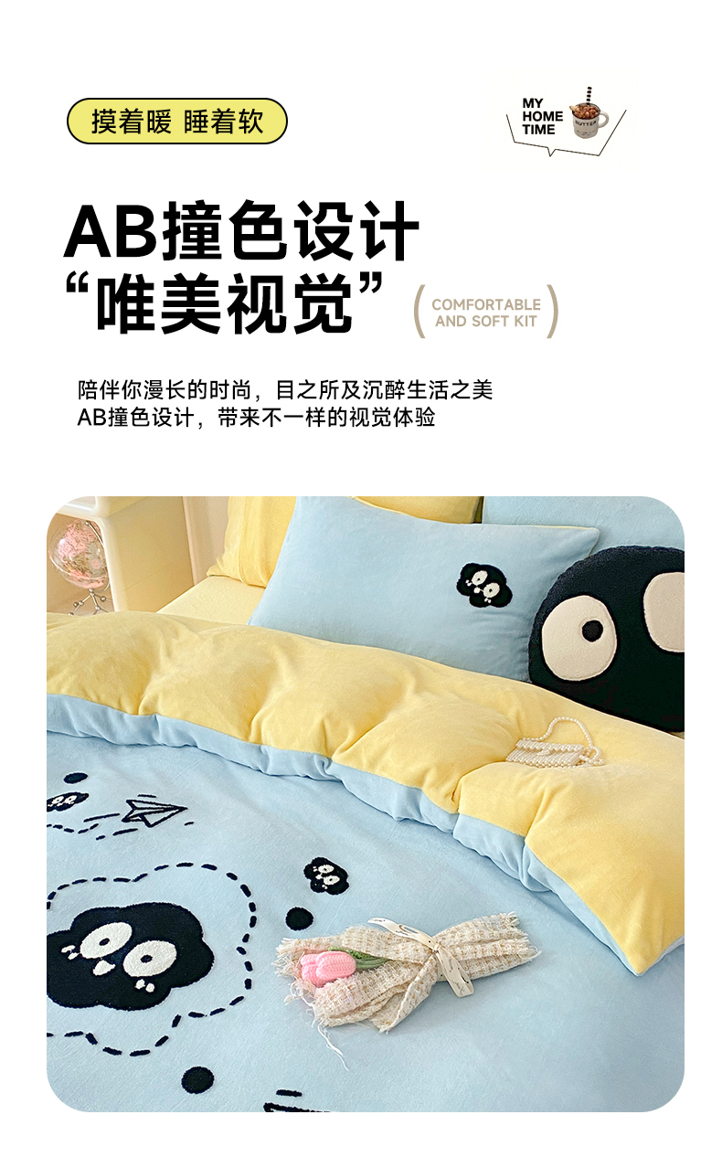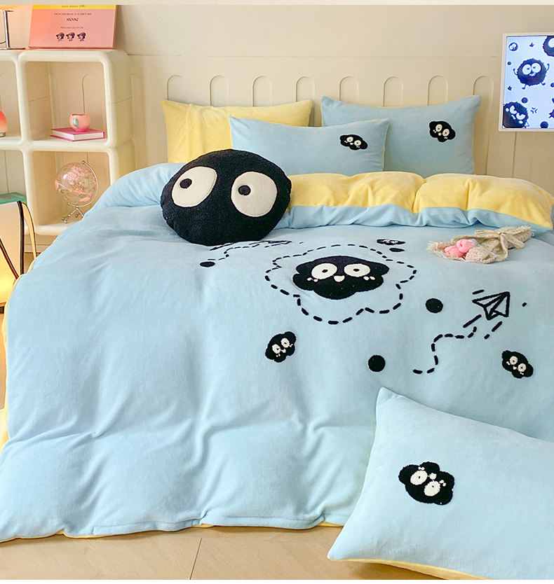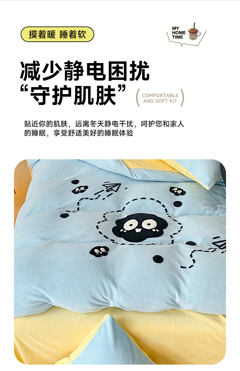 N先生+V 13814689556 发大图/买家秀 2025秋冬新款小清新牛奶绒毛巾绣四件套-小煤球 蓝黄