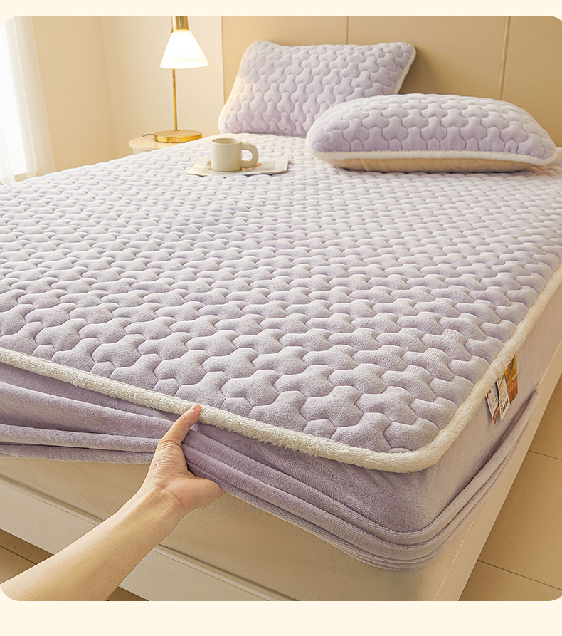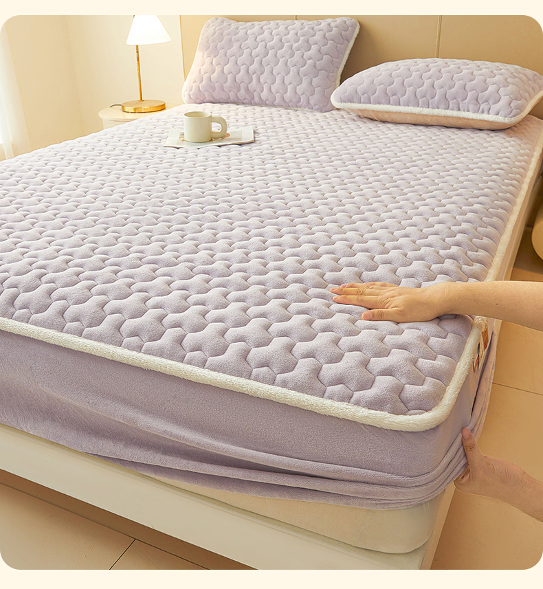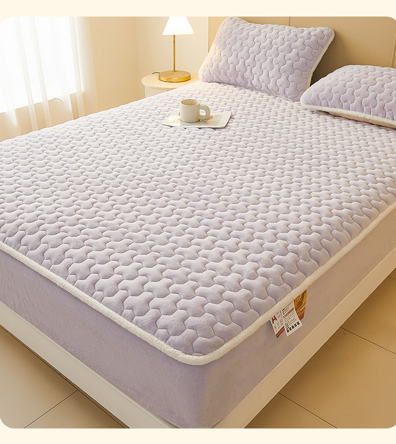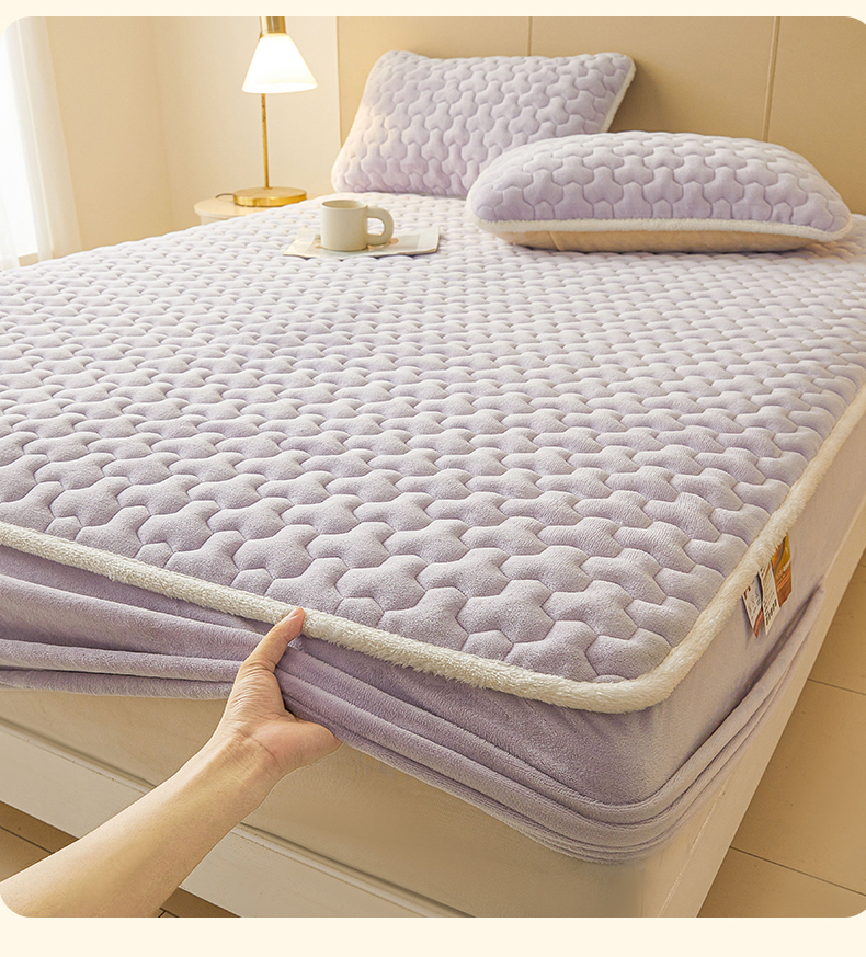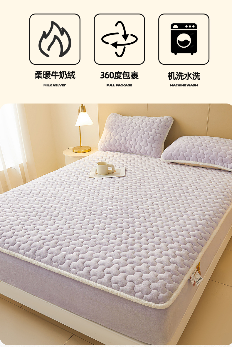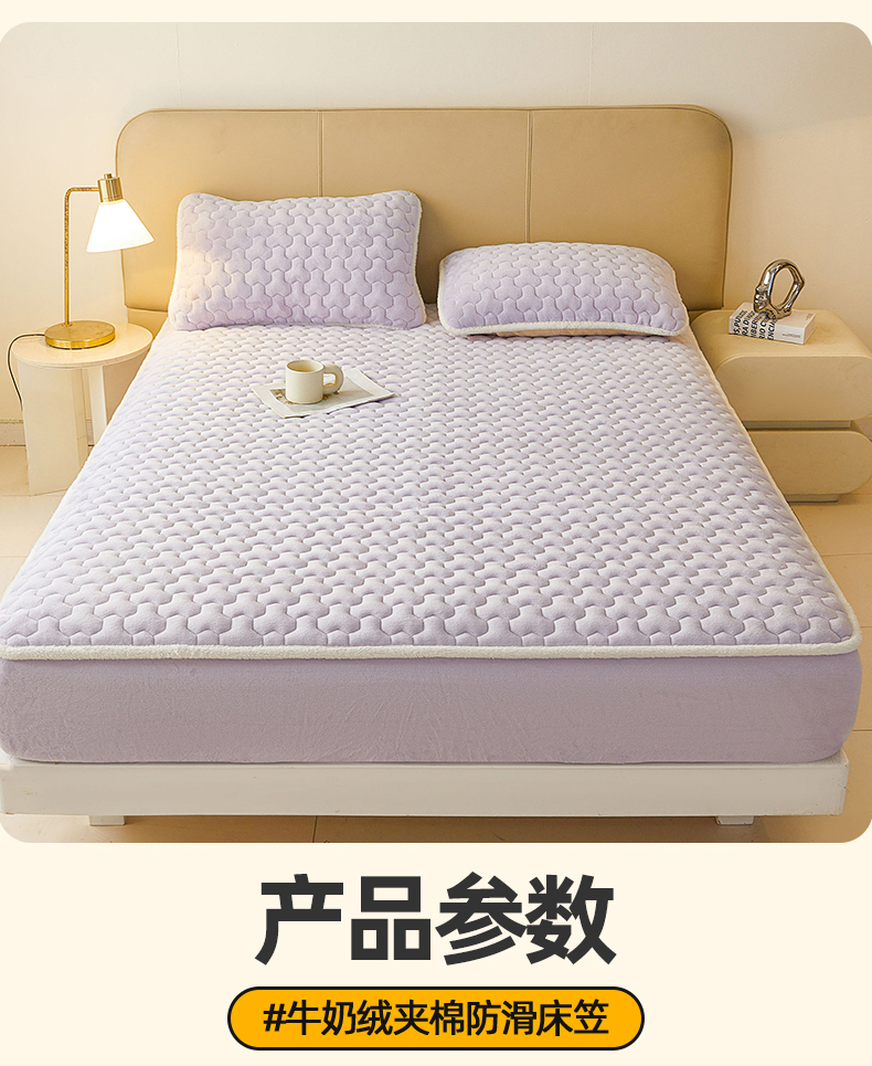 • 91家纺网 家纺一手货源 找家纺 雯豆家纺 2025冬季新款纯色素色牛奶绒夹棉床笠三件套保暖席梦思保护套牛奶绒夹棉床笠-雪青