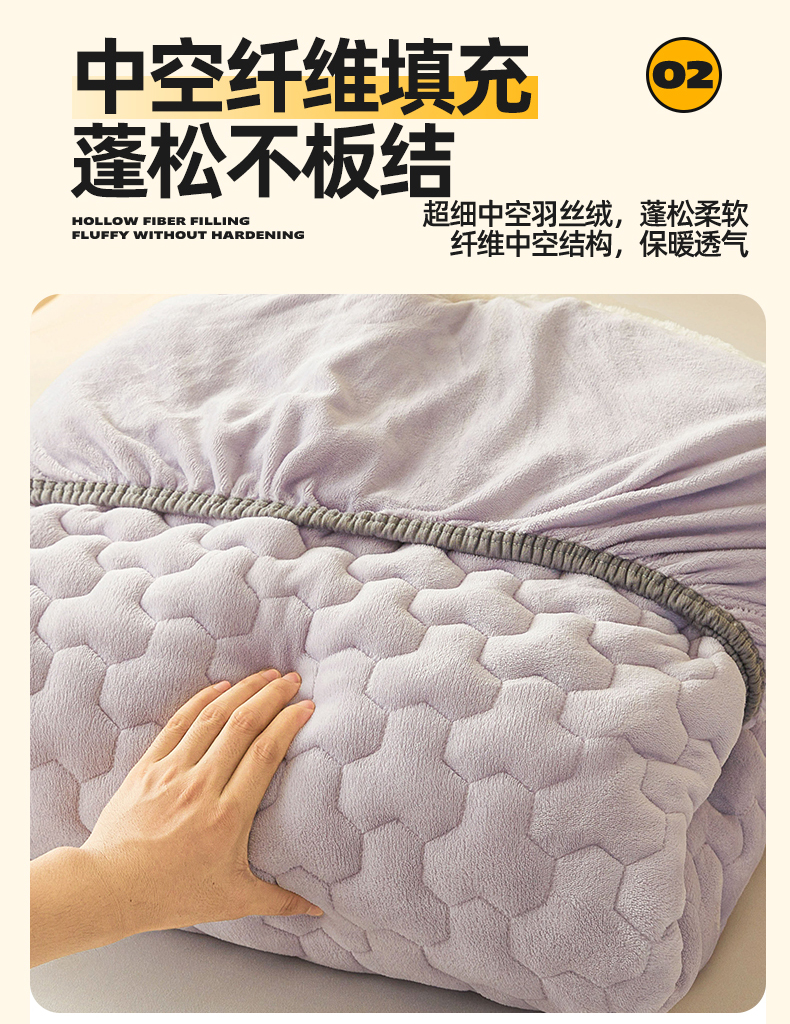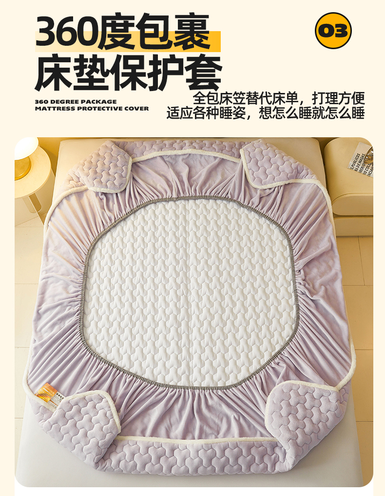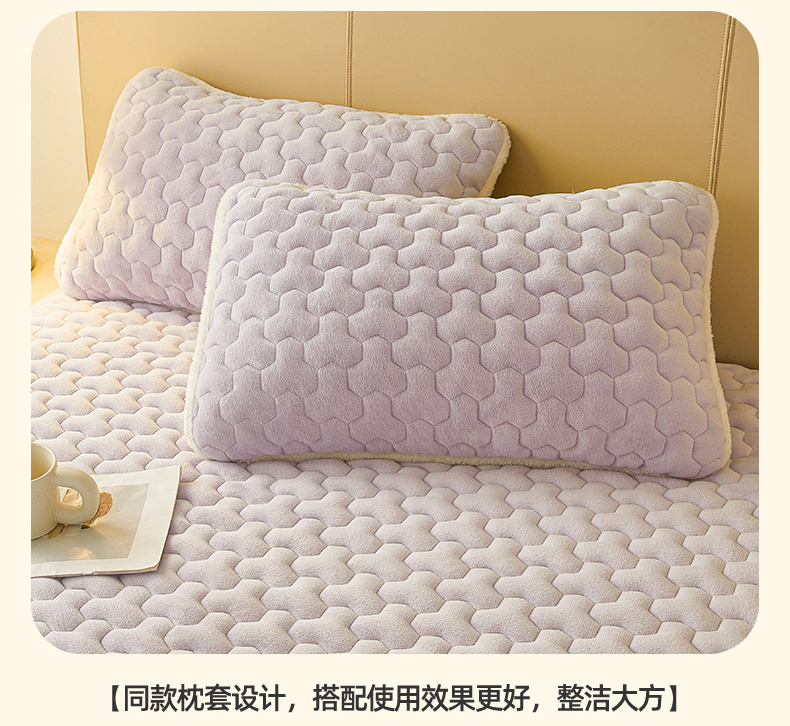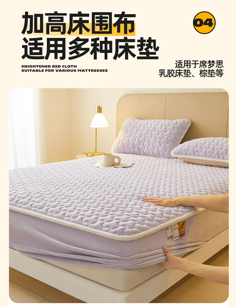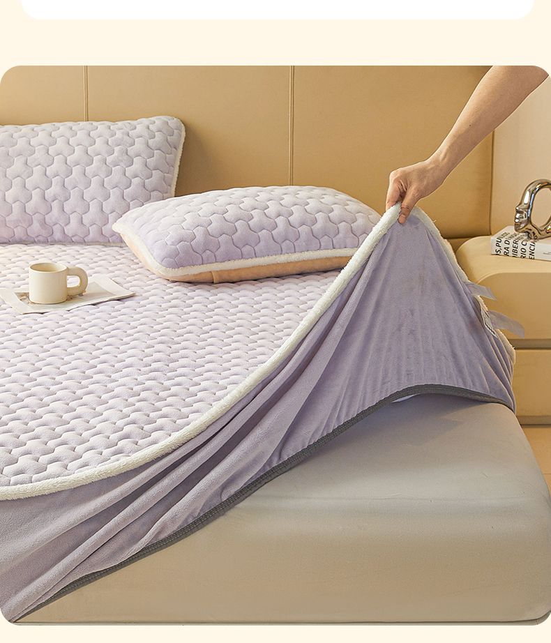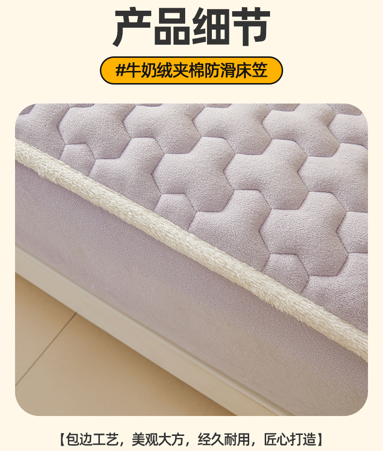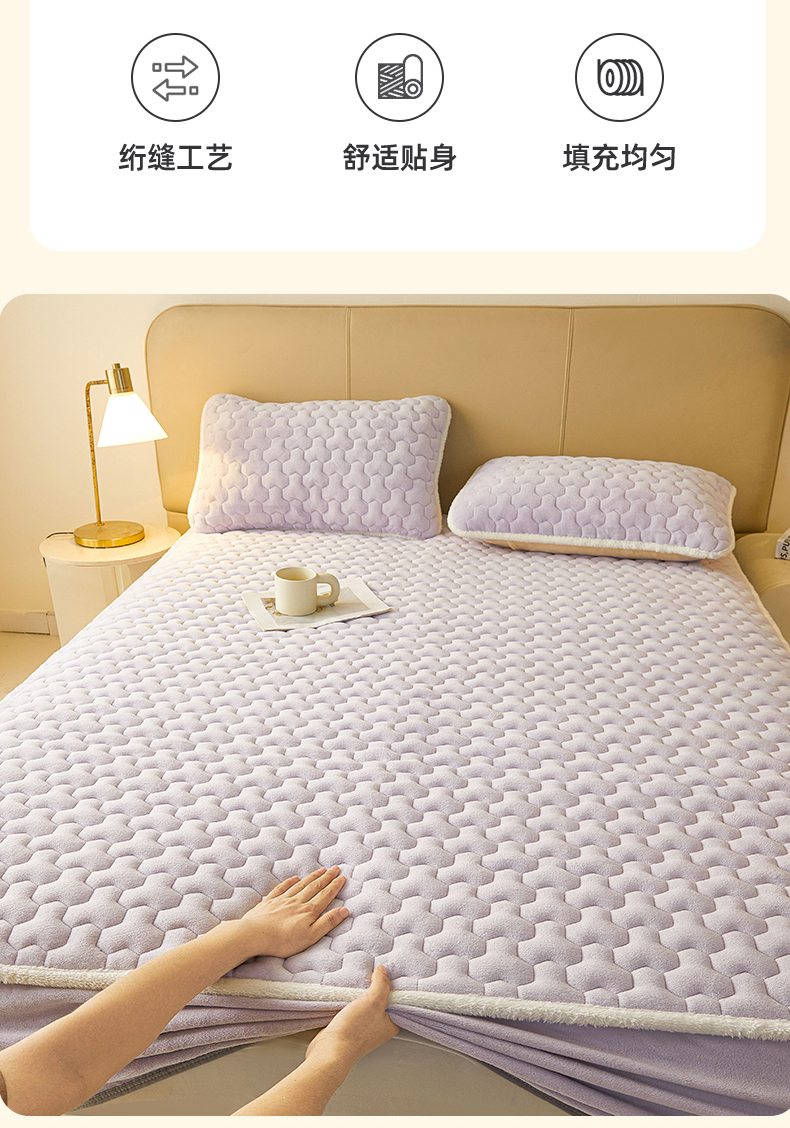 • 91家纺网 家纺一手货源 找家纺 雯豆家纺 2025冬季新款纯色素色牛奶绒夹棉床笠三件套保暖席梦思保护套牛奶绒夹棉床笠-雪青