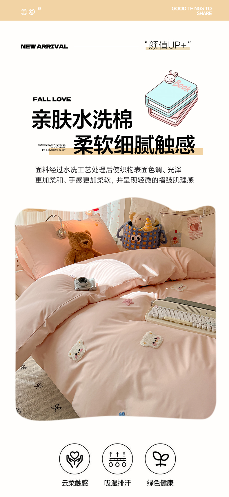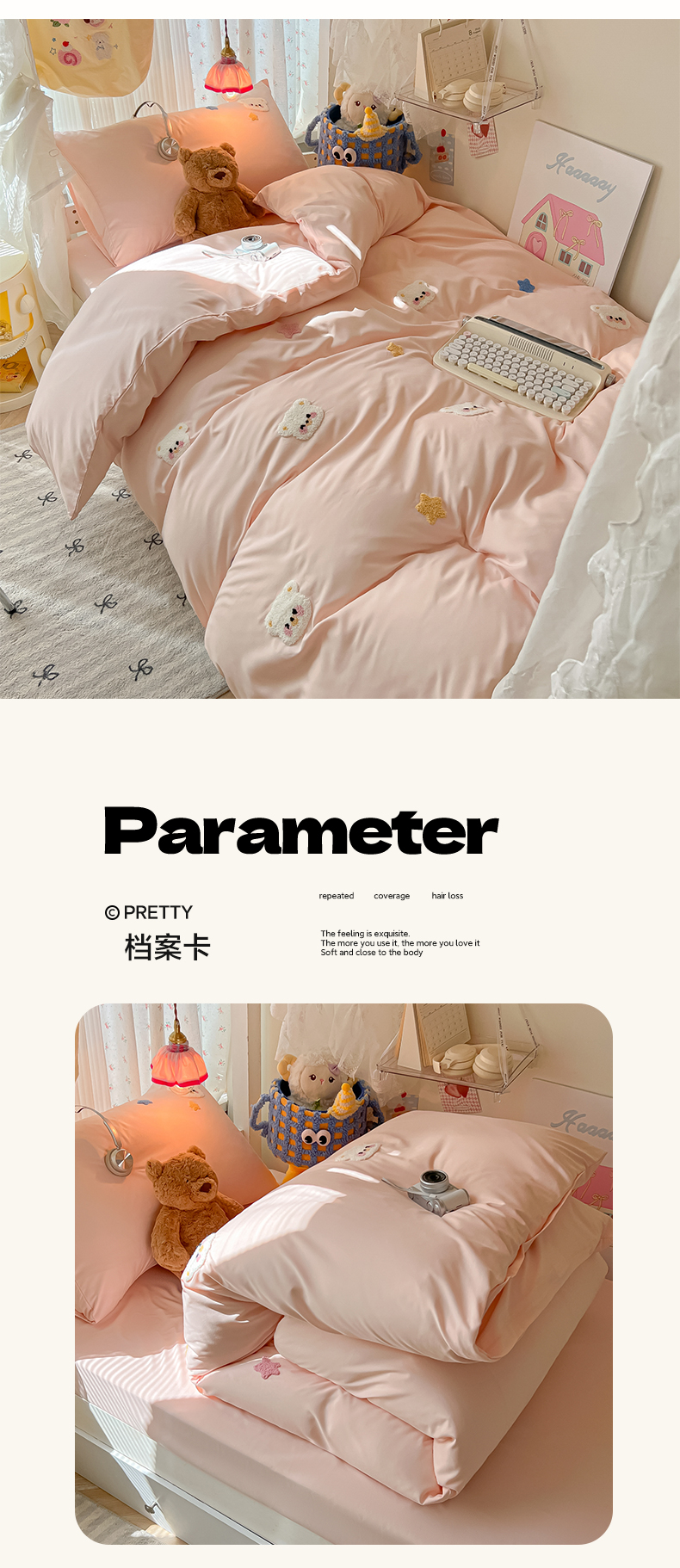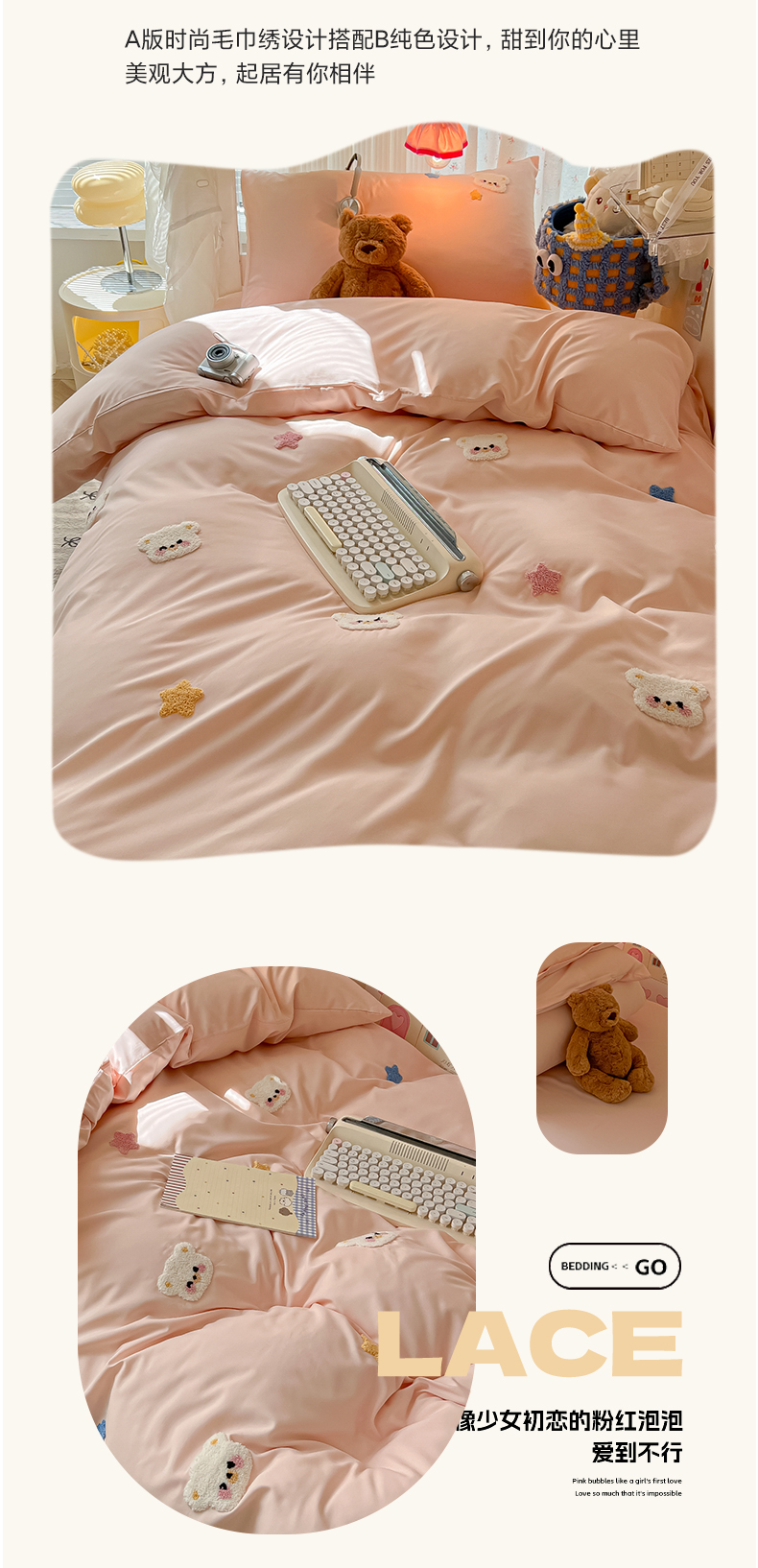 当前位置: 91家纺网 > 商品网购 > 床品套件 > 三件套 > 韩巢家纺 2025新款学生宿舍寝室高低床水洗棉毛巾绣学生季被套床单三件套-幸运熊 幸运熊浅粉
