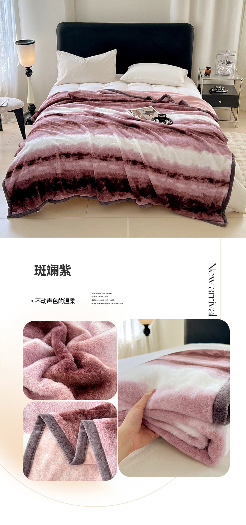 商品名称:锦润家纺 2025新款高克重多功能兔毛绒包边毛毯毯子 斑斓紫