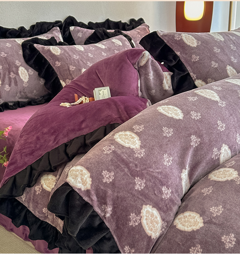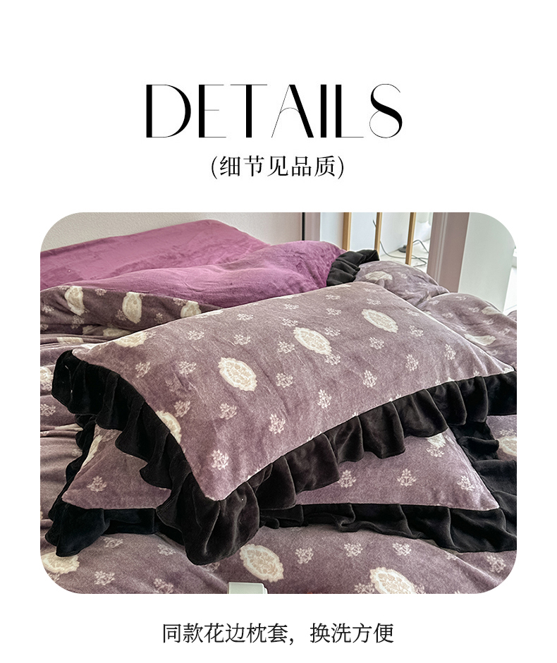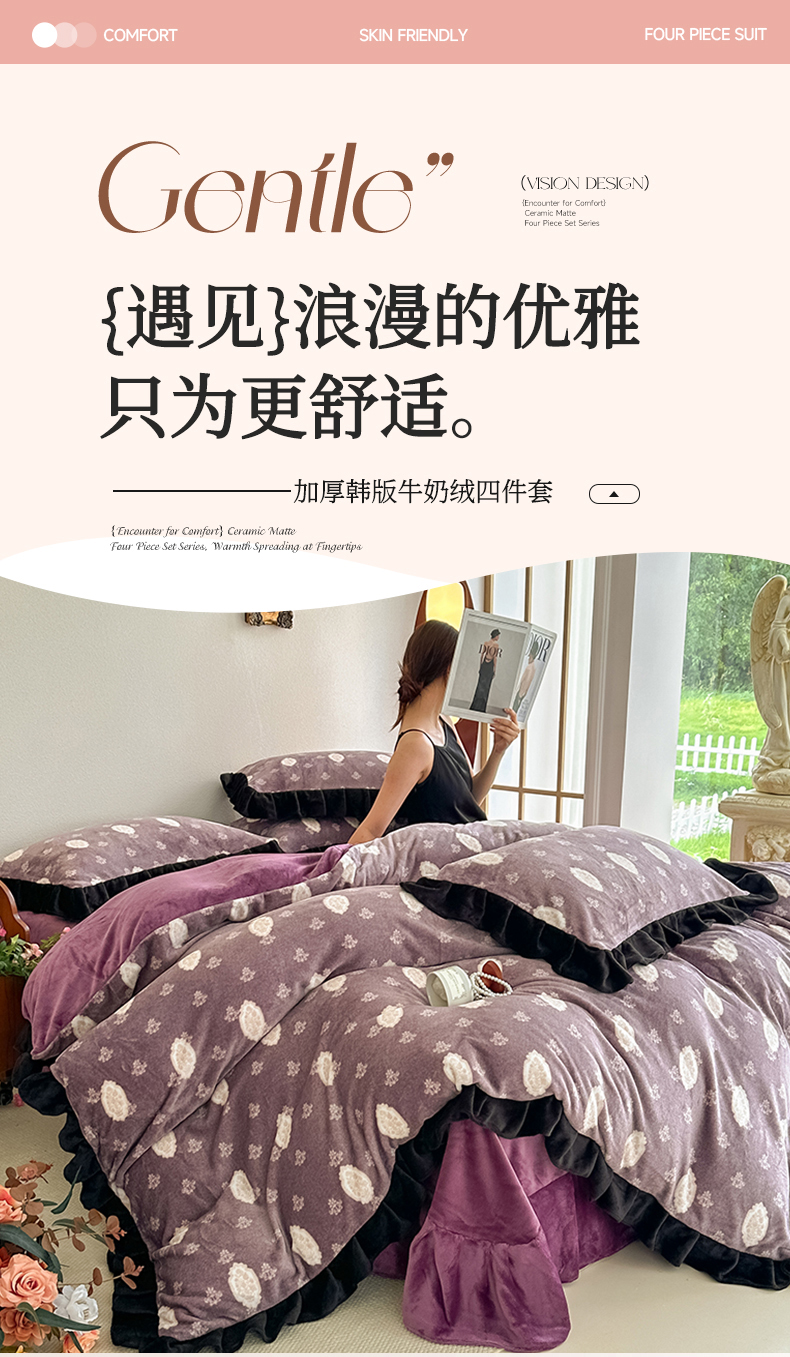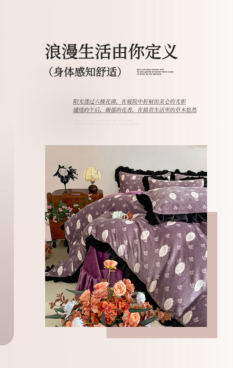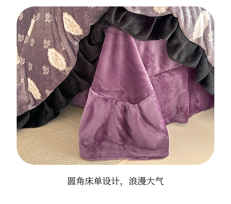 亿品2025新款直播爆款韩版赫本风高克重牛奶绒四件套床裙款 8.5斤(有买家秀加v) 花边紫韵,花边紫韵