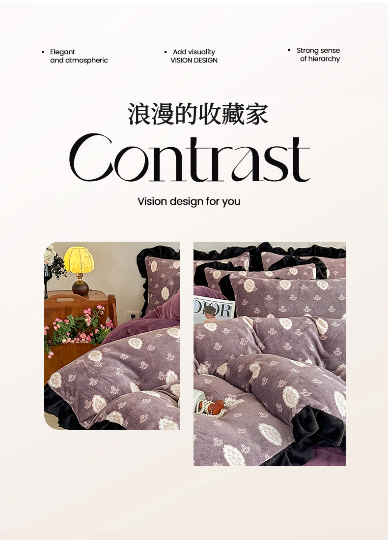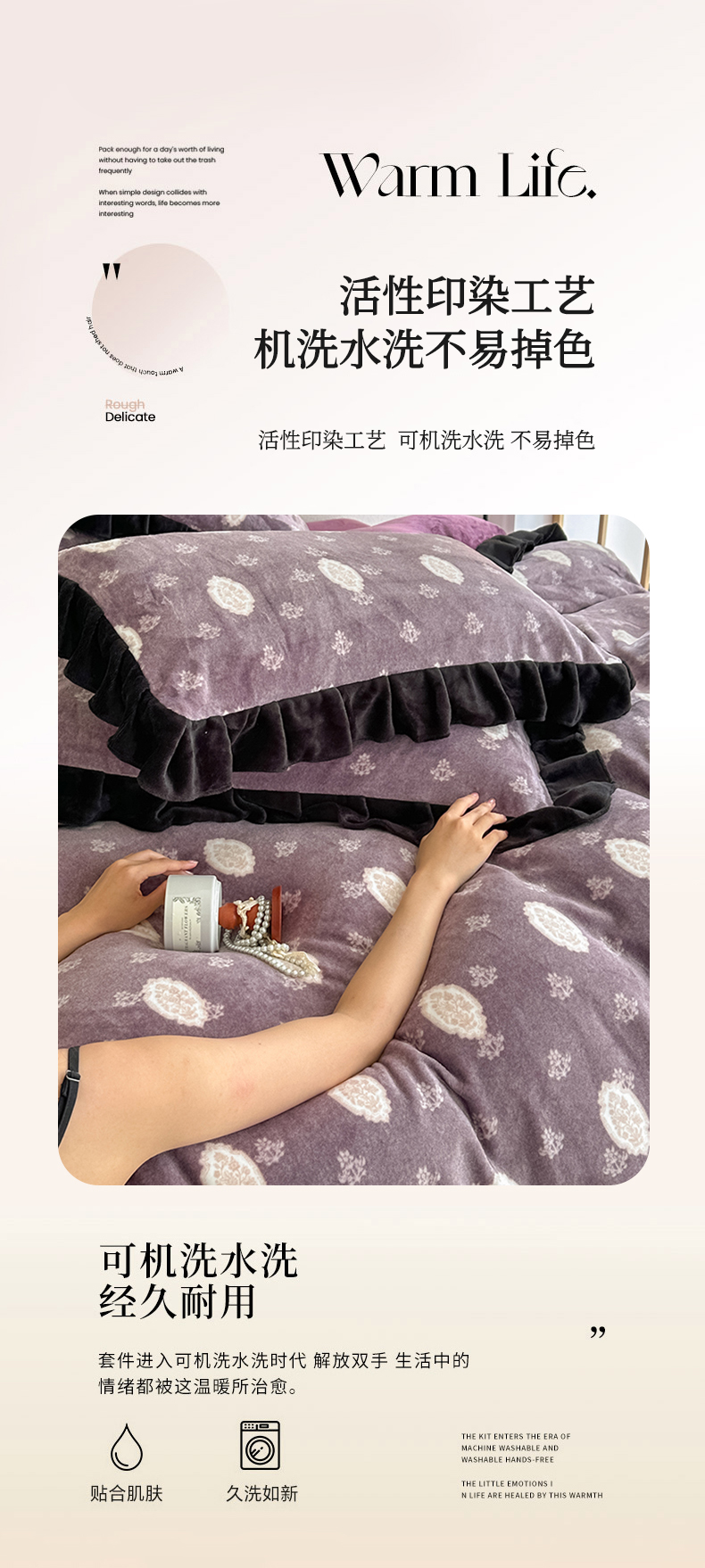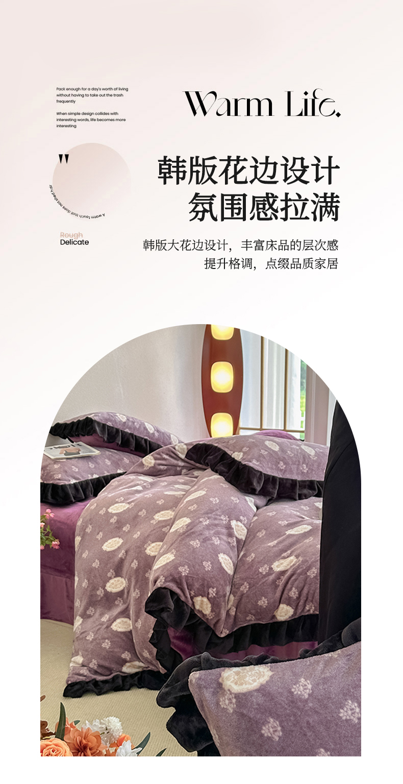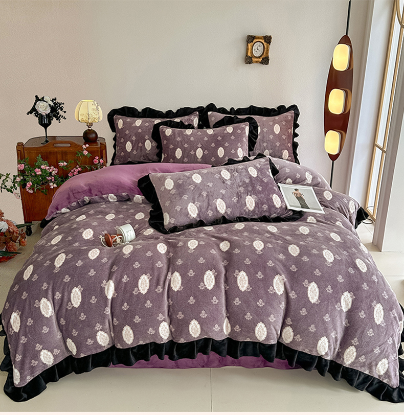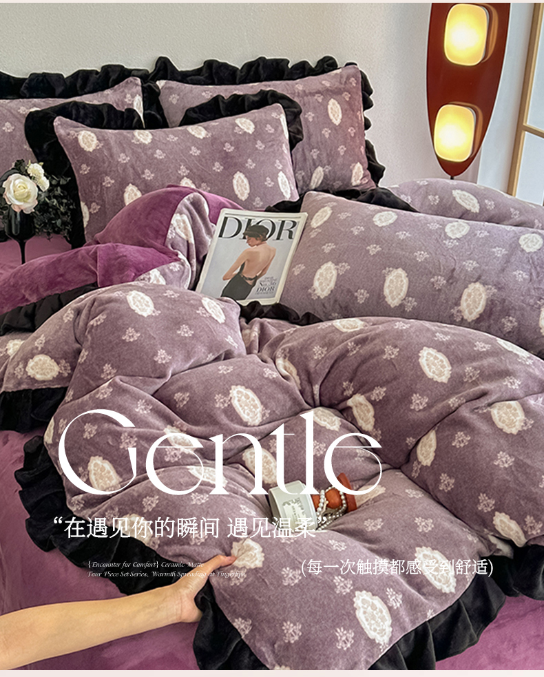 亿品2025新款直播爆款韩版赫本风高克重牛奶绒四件套床裙款 8.5斤(有买家秀加v) 花边紫韵,花边紫韵