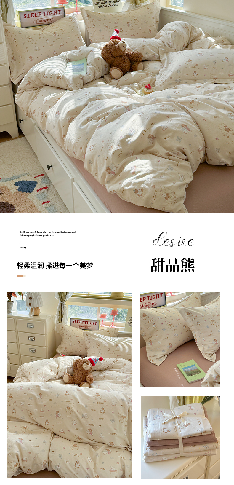 萝莉家纺 2025新款全棉小清新高品质数码印花磨毛四件套 甜品熊