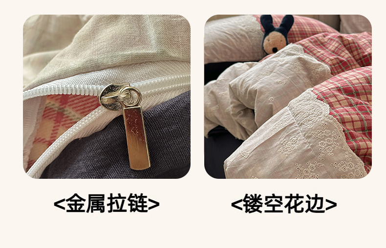 (总)晚爱家纺(原晚安家居) 2025新款韩系少女风蕾丝花边四件套云感木棉双层纱-苏菲,苏菲·红绿格,苏菲·大红格,苏菲·浅咖格,苏菲·浅蓝格,苏菲·浅绿格,苏菲·深咖格