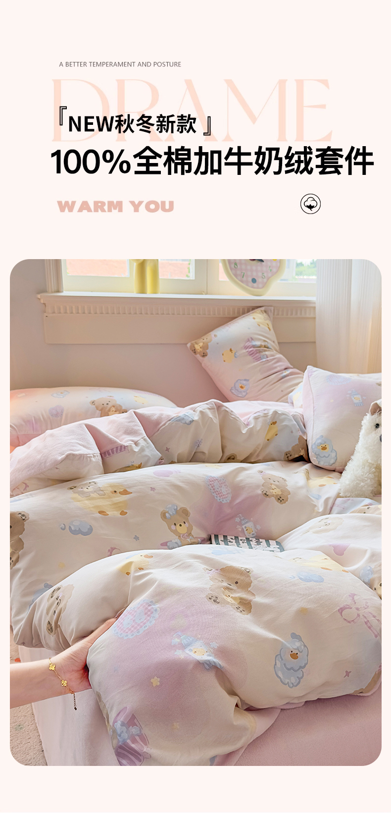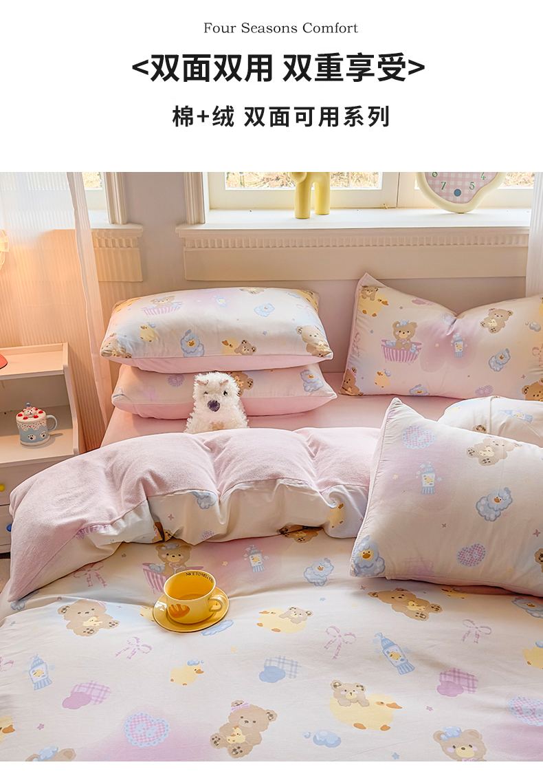 (总)KA家纺 2025新款秋冬A棉B绒纯棉牛奶绒棉加绒四件套