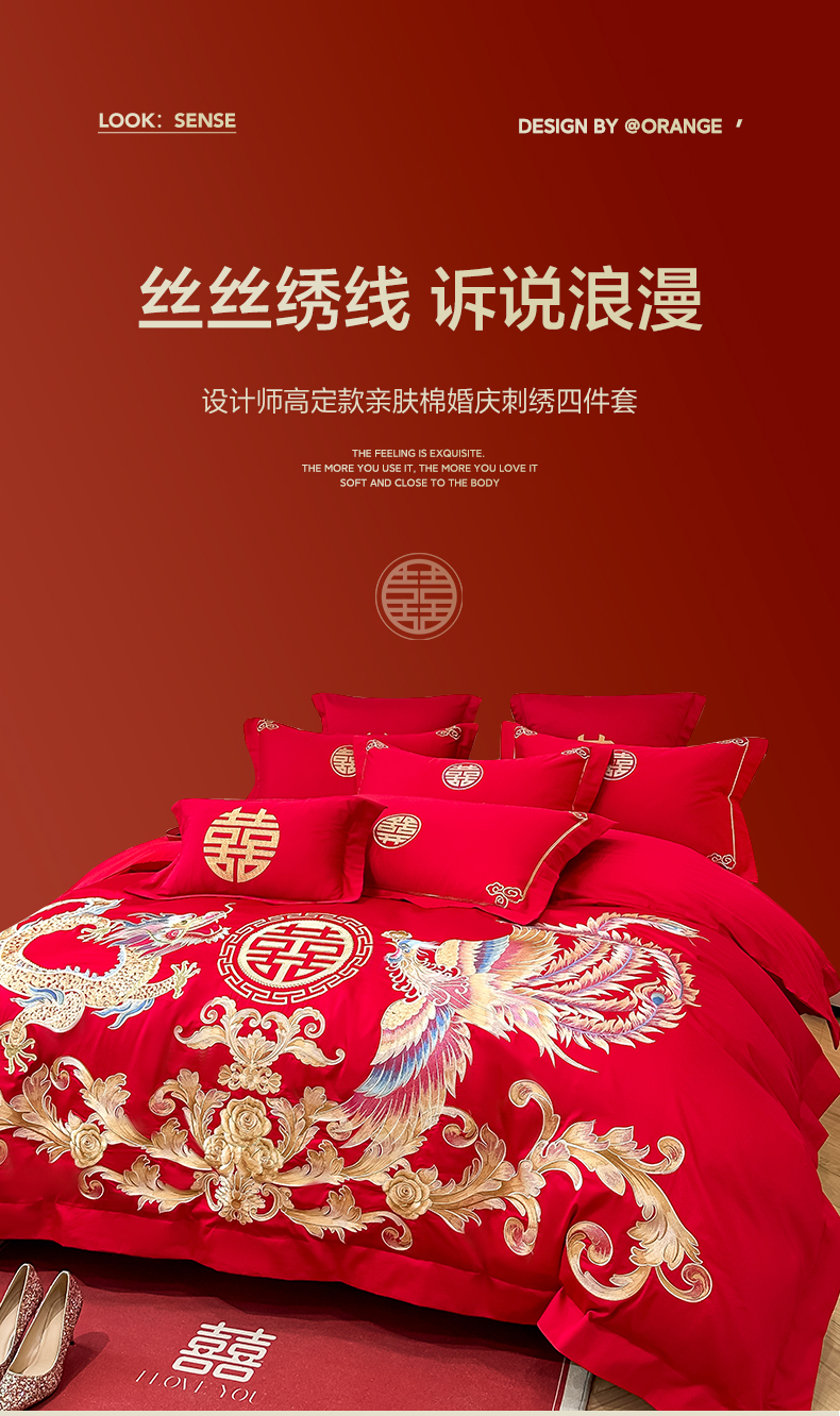 (总)欧乐蒂 2025新款全棉刺绣婚庆四件套,佳偶天成,龙凤和美,龙姿凤彩,玫瑰恋人,倾城之恋,双囍临门,甜蜜爱情,囍结良缘