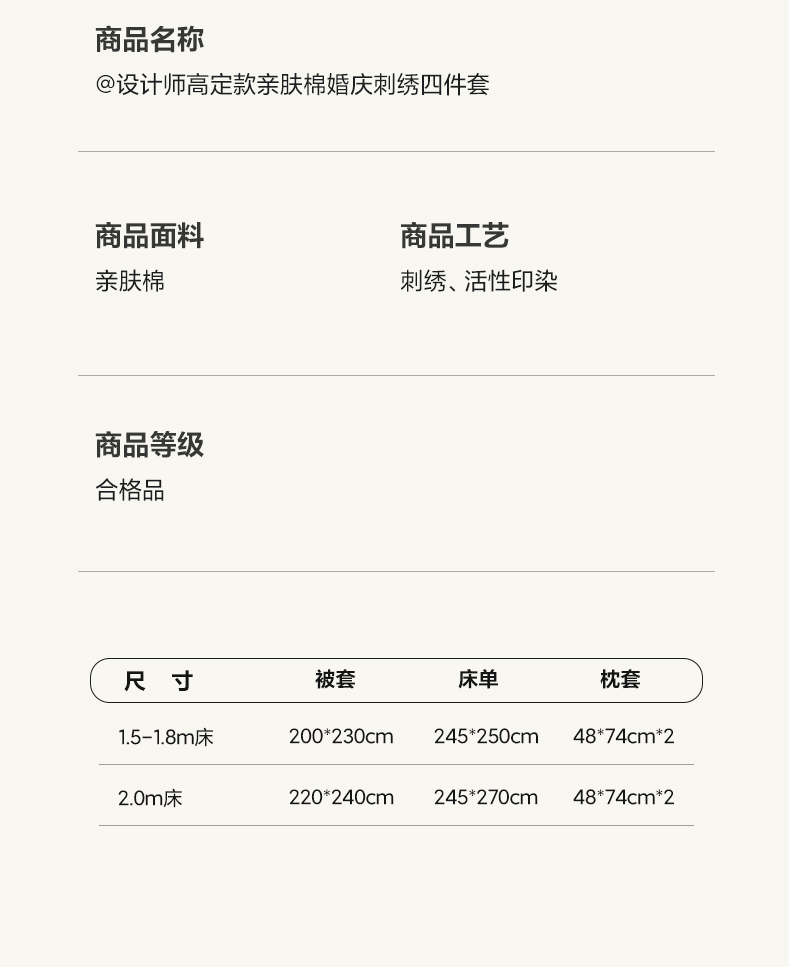 商品名称:(总)欧乐蒂 2025新款亲肤棉婚庆刺绣四件套