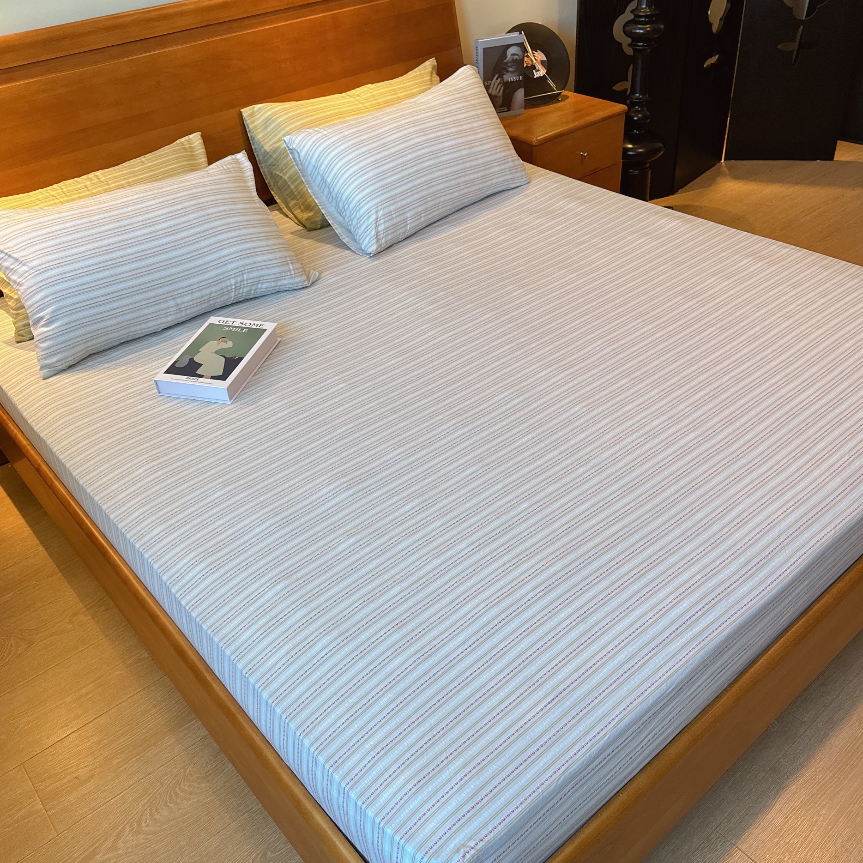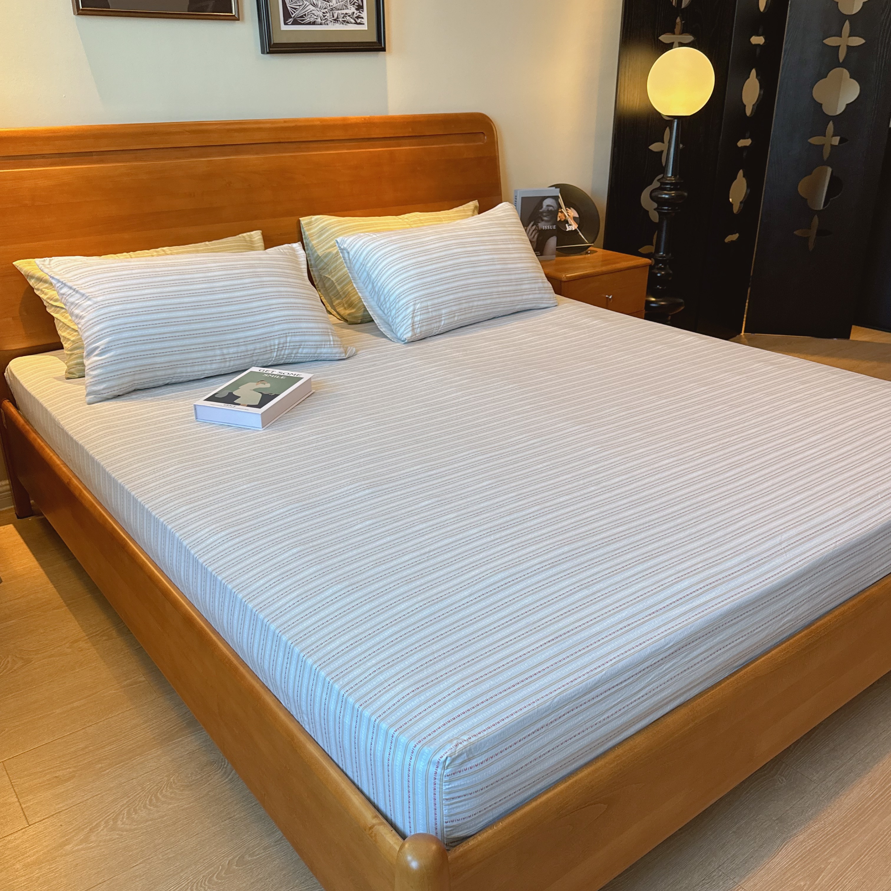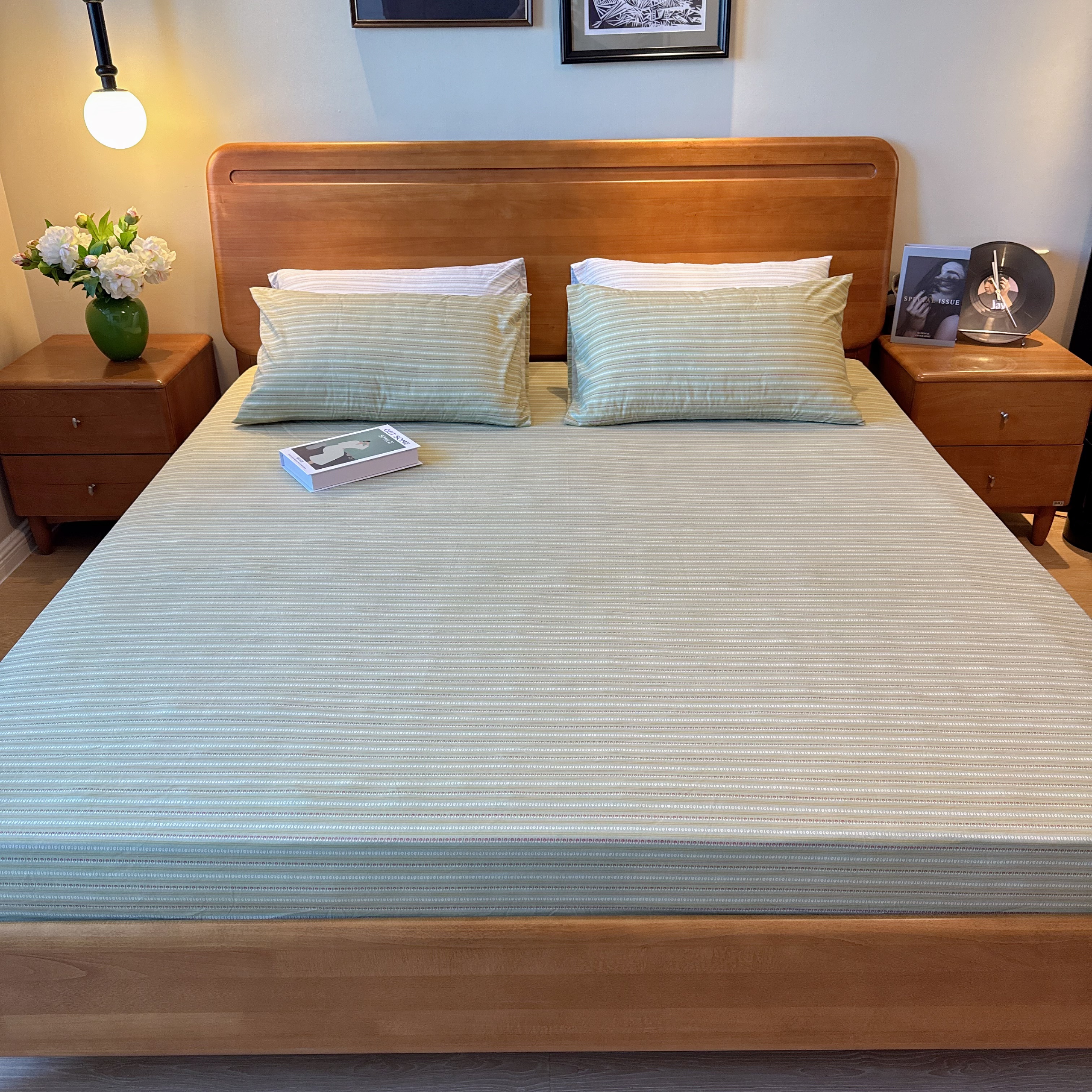 兜米家居 2025新款简约轻氧水洗色织棉床笠 条纹绿