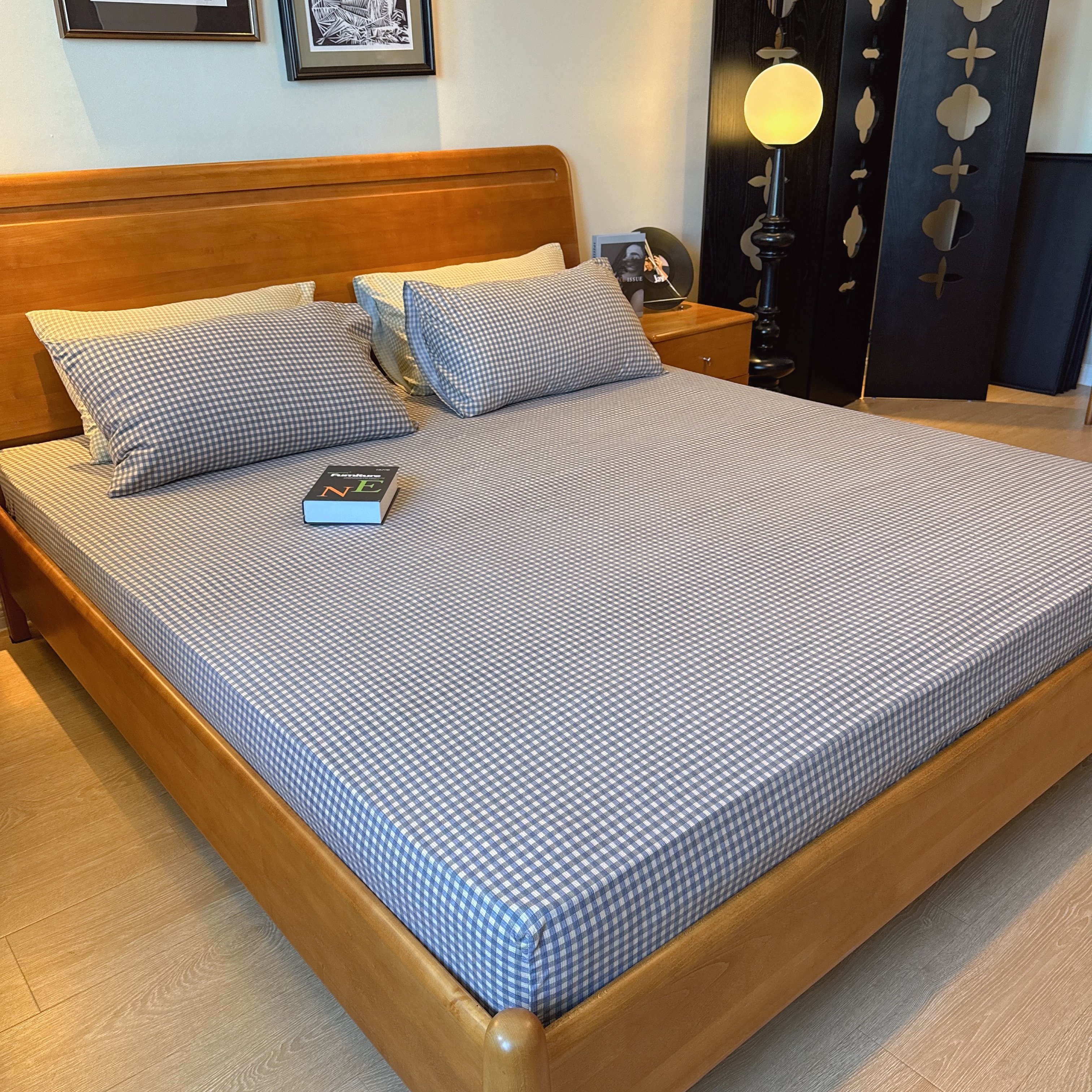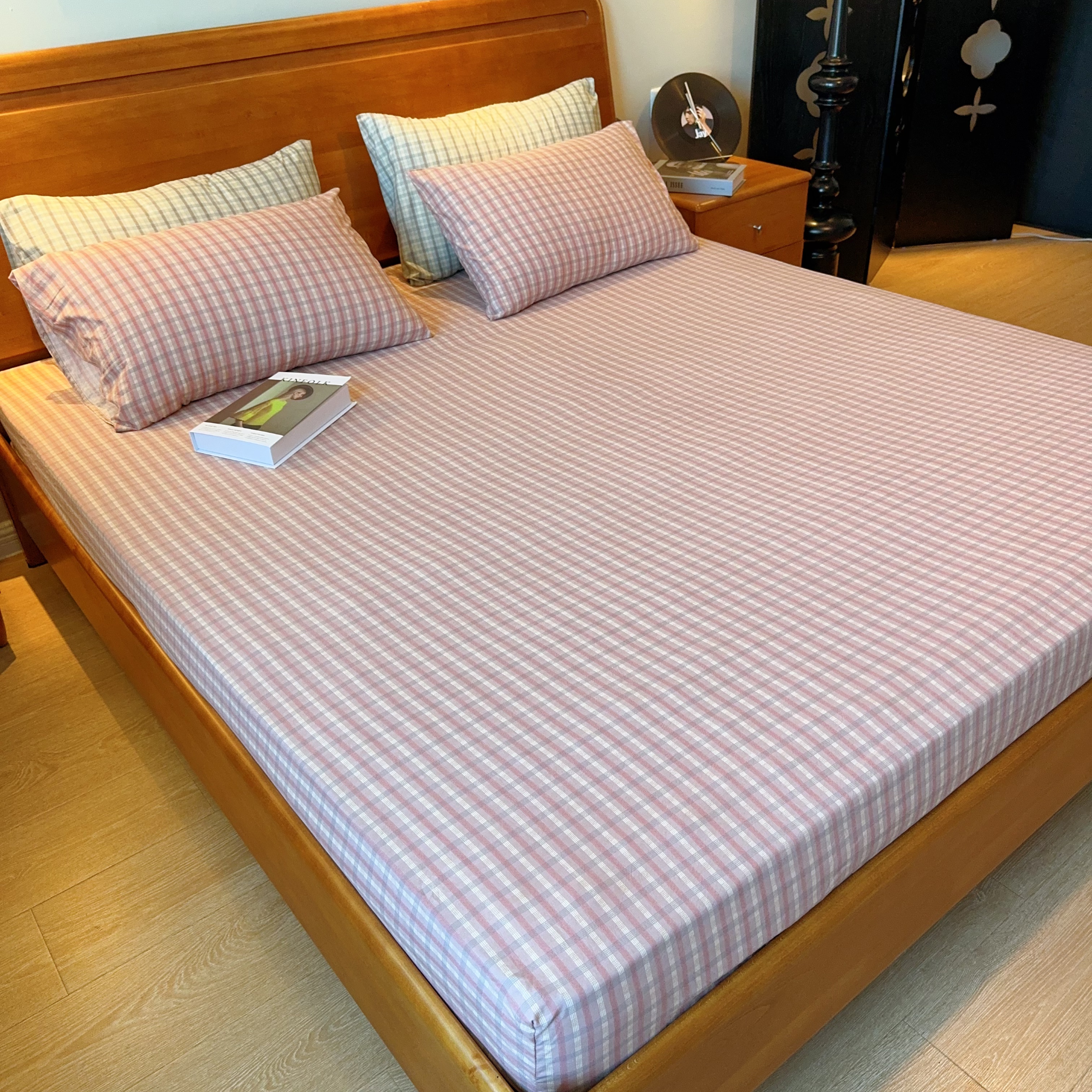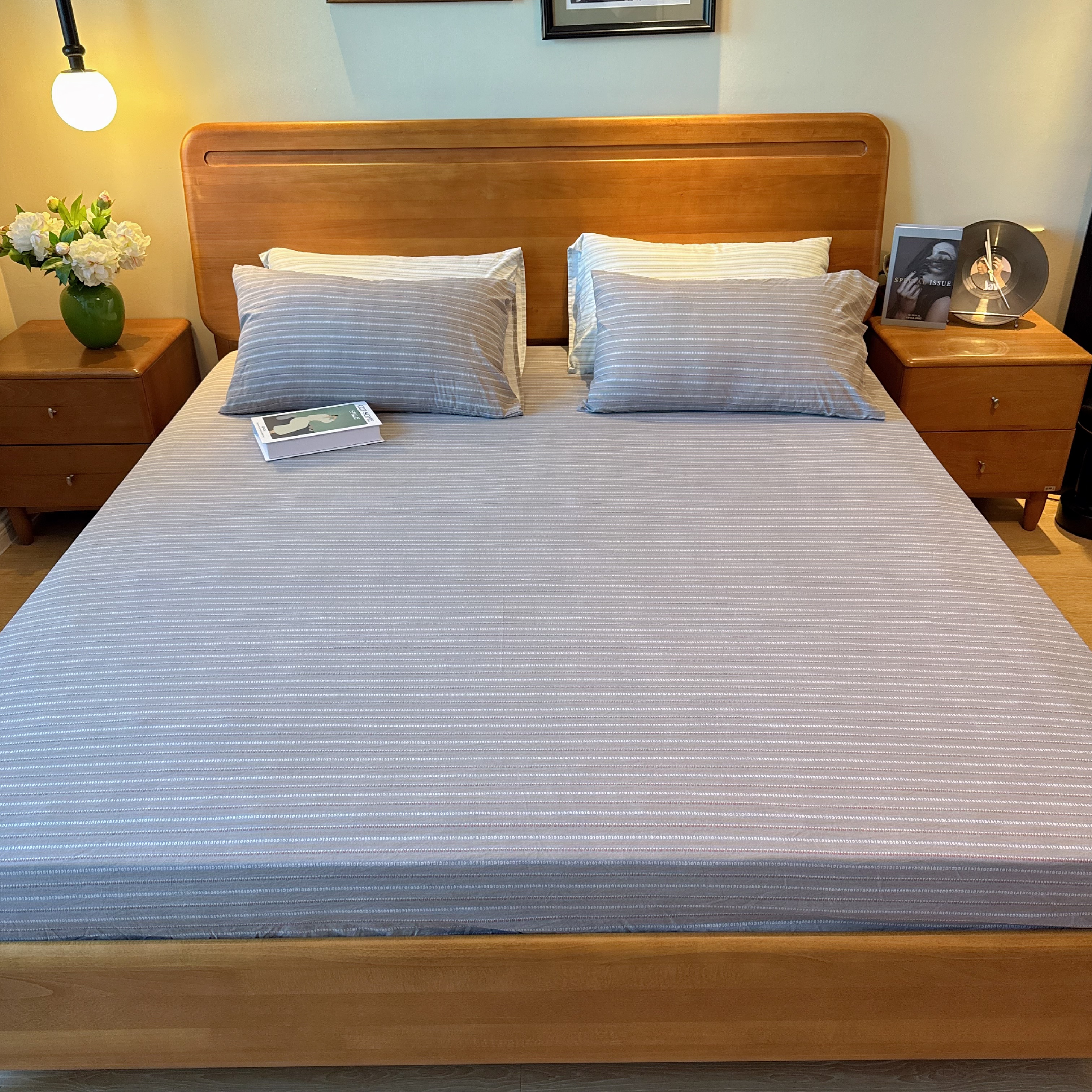 兜米家居 2025新款简约轻氧水洗色织棉床笠 条纹绿