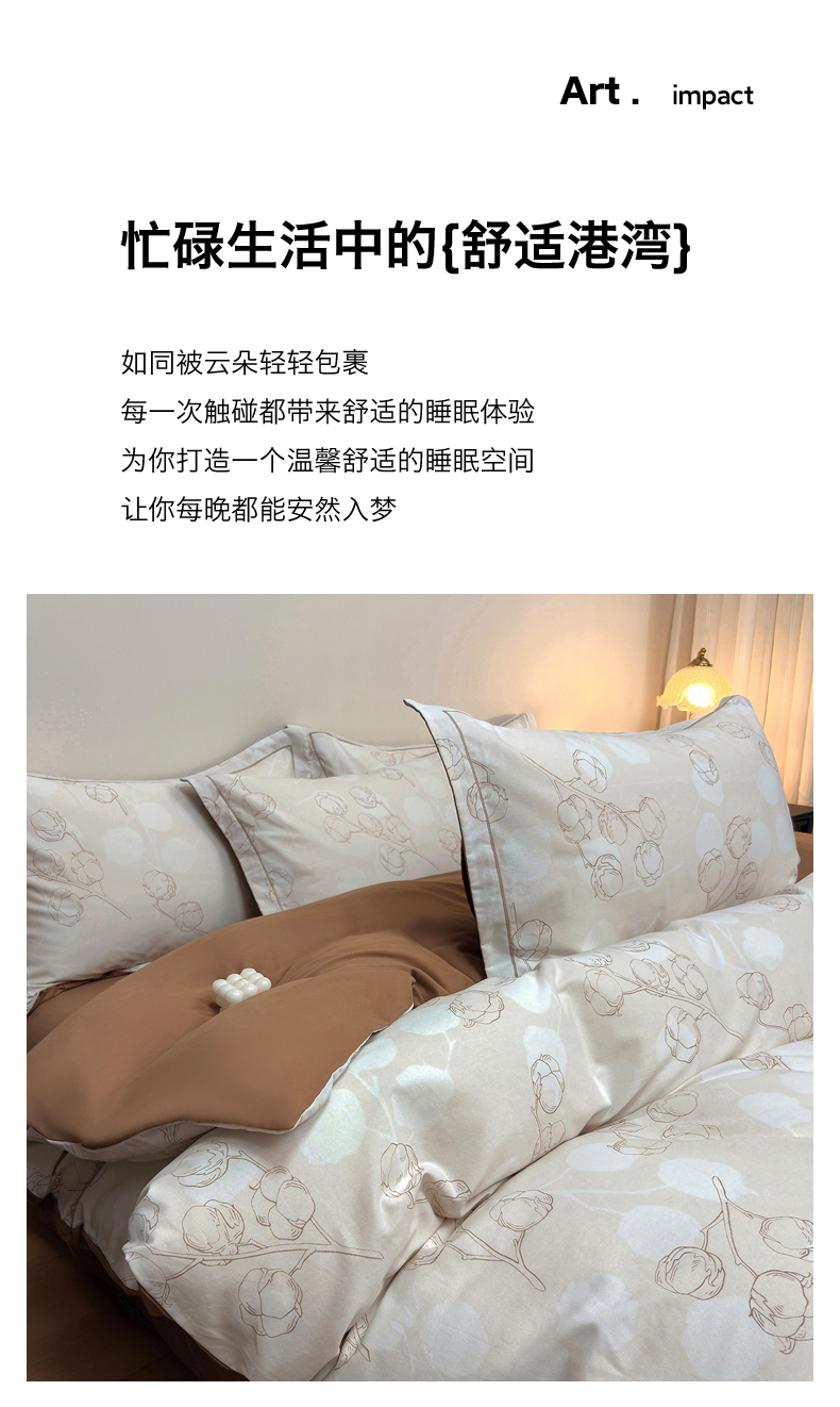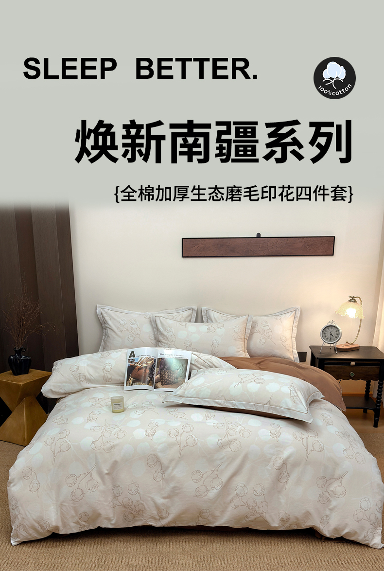当前位置: 91家纺网 > 商品网购 > 床品套件 > 四件套 > 全棉普通四件套 > 未来家居 2025新款焕新南疆秋冬全棉加厚磨毛纯色印花四件套 情意绵绵-咖