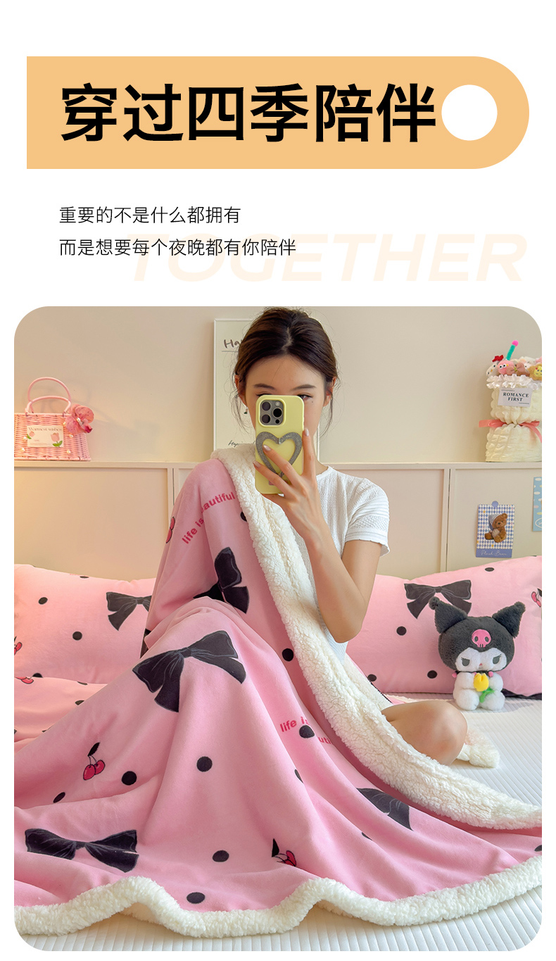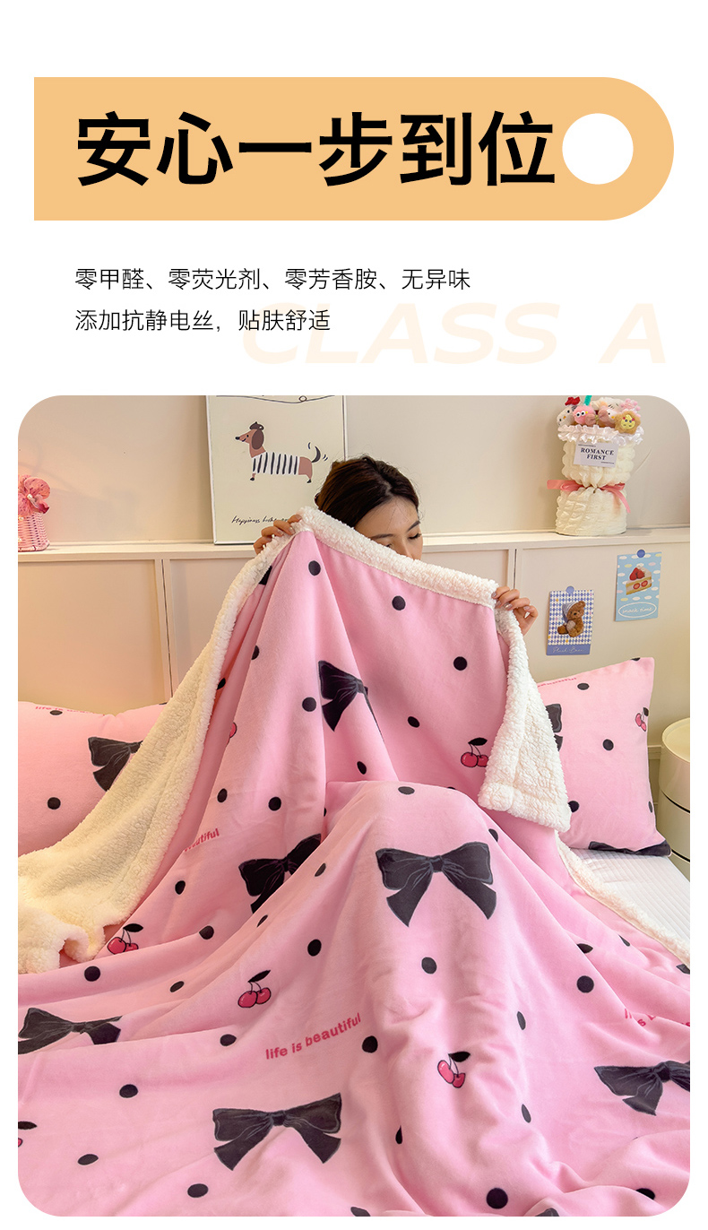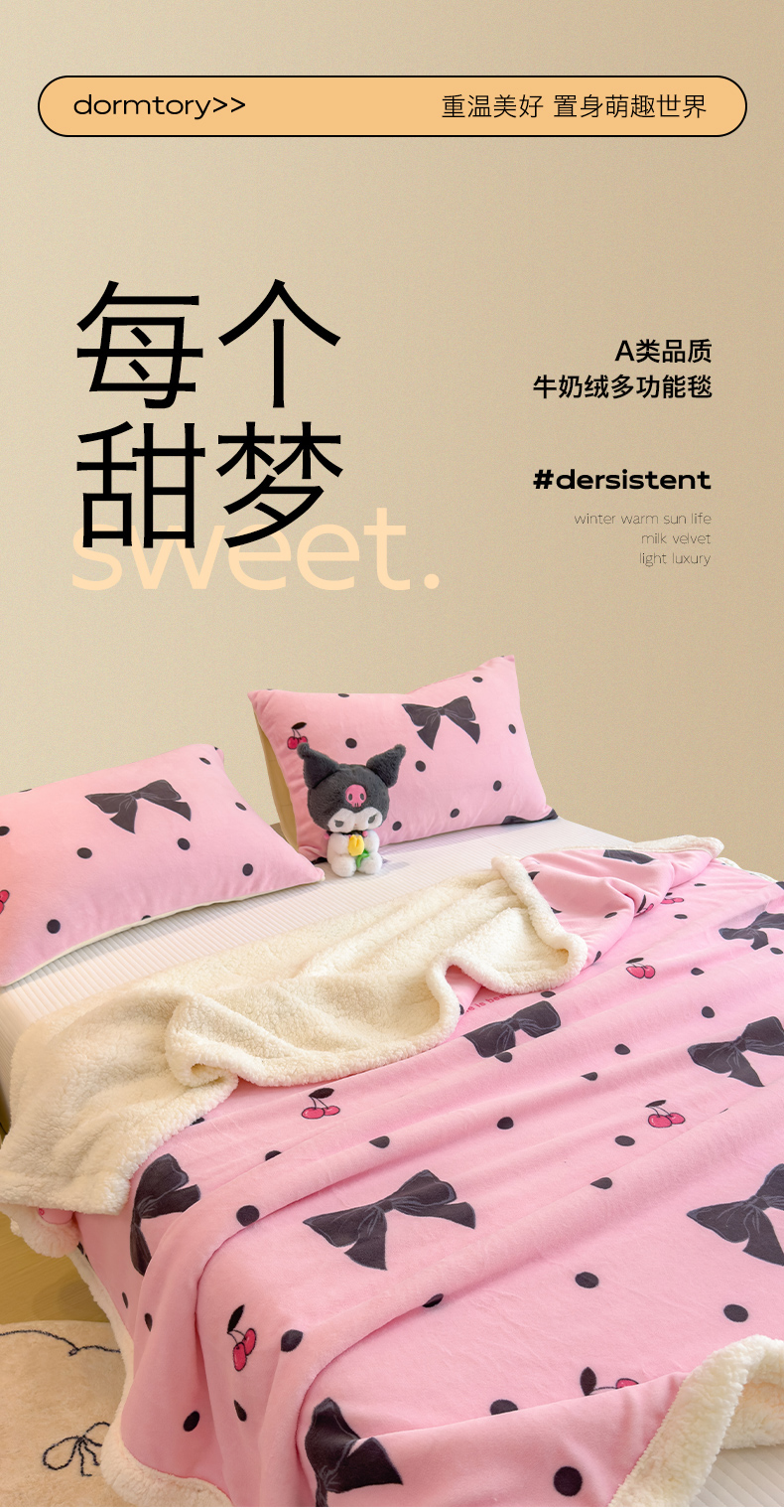 商品名称:丝幔家纺 2025新款A类卡通牛奶绒毛毯多功能毯 芭比蝴蝶结