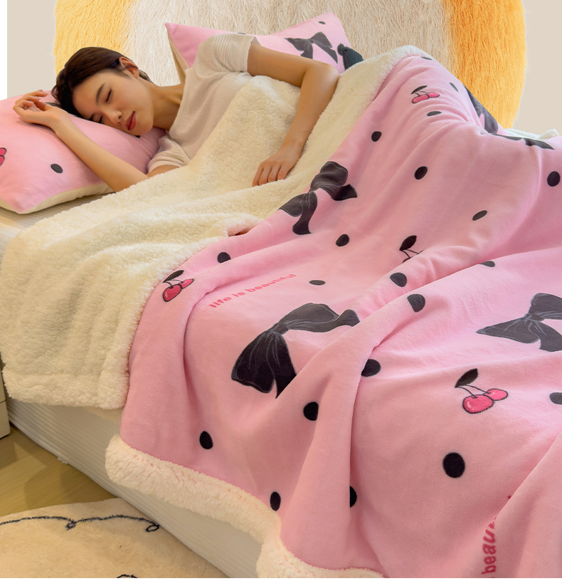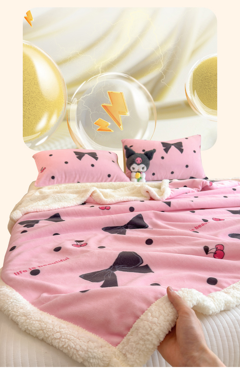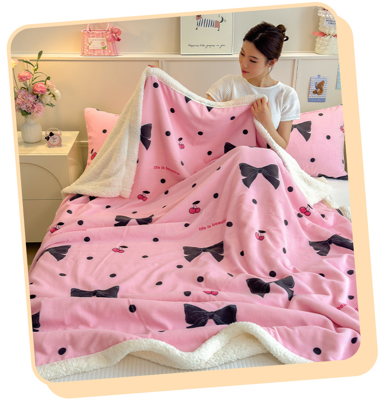 丝幔家纺 2025新款A类卡通牛奶绒毛毯多功能毯 芭比蝴蝶结