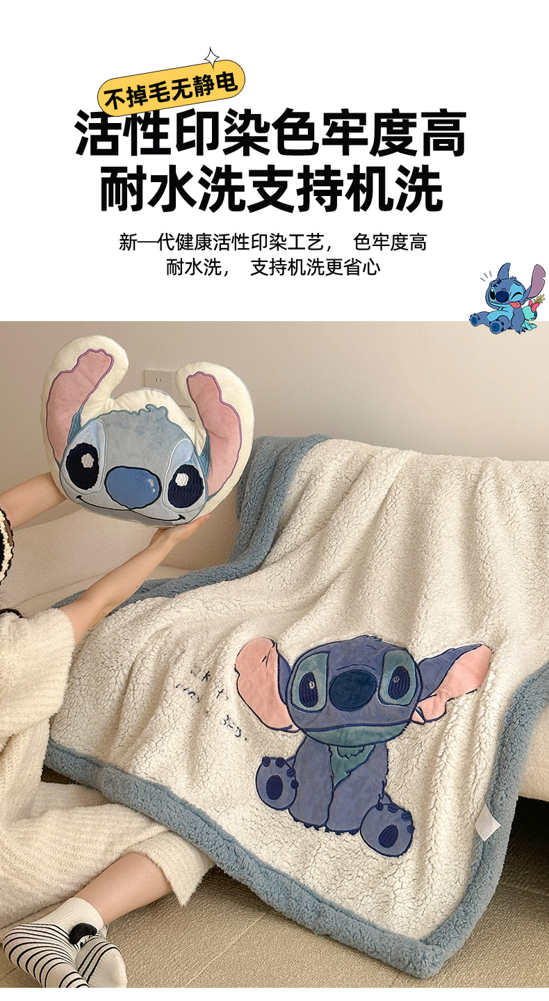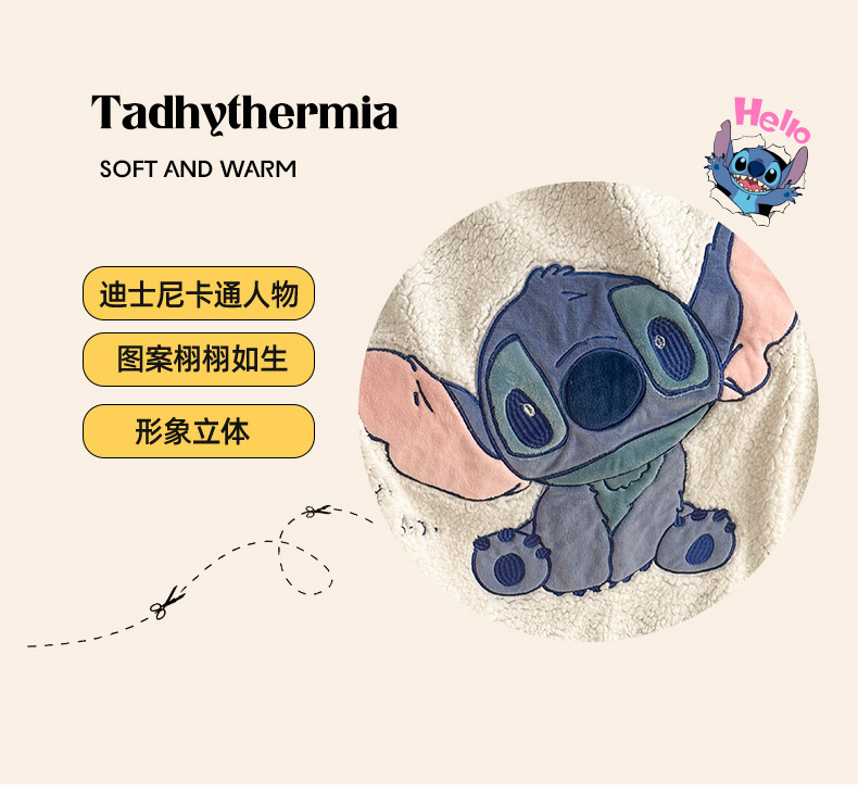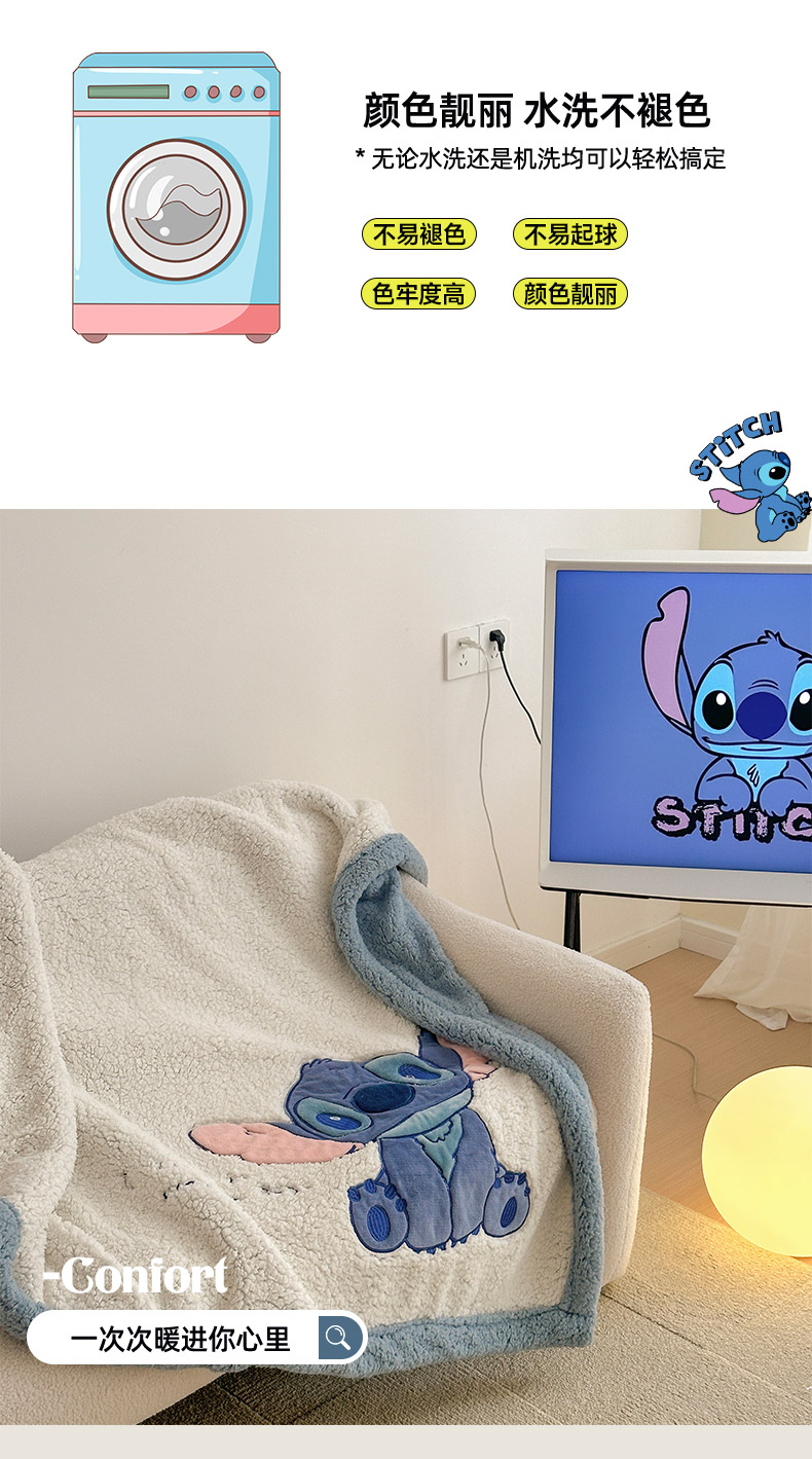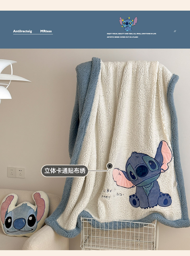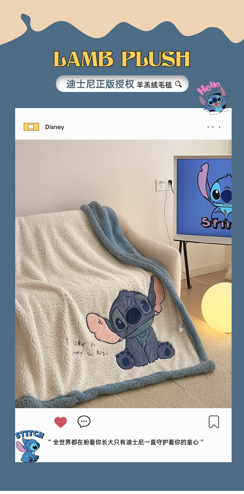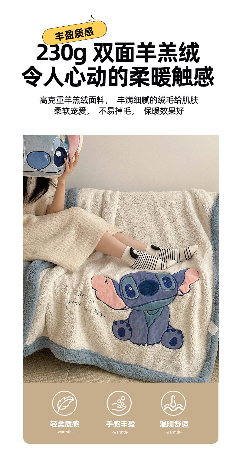 商品名称:小叮当家纺仓储工厂店 2025新款A类母婴级迪士尼毛毯牛奶绒毯珊瑚绒毛毯沙发毯盖毯雪花绒毛毯午睡毯子 贴布绣-卖萌史迪仔