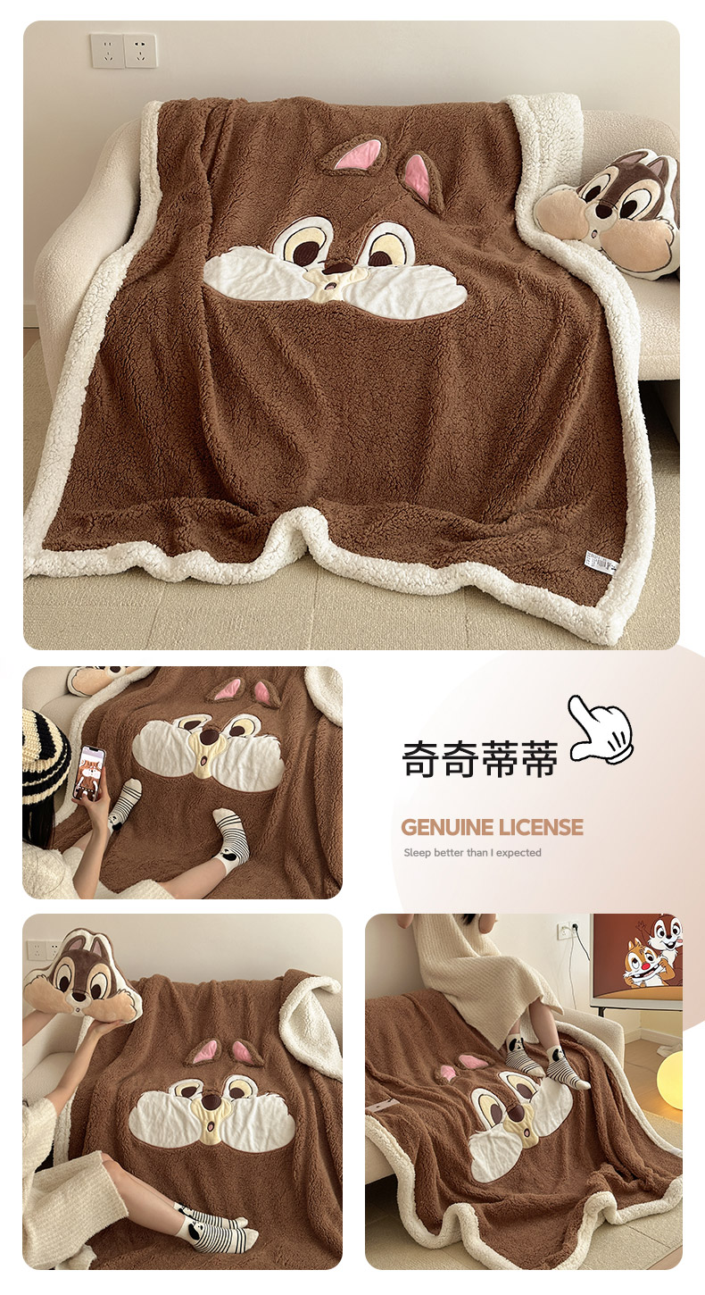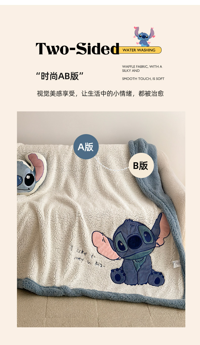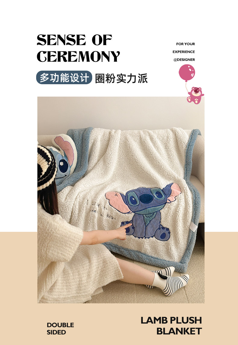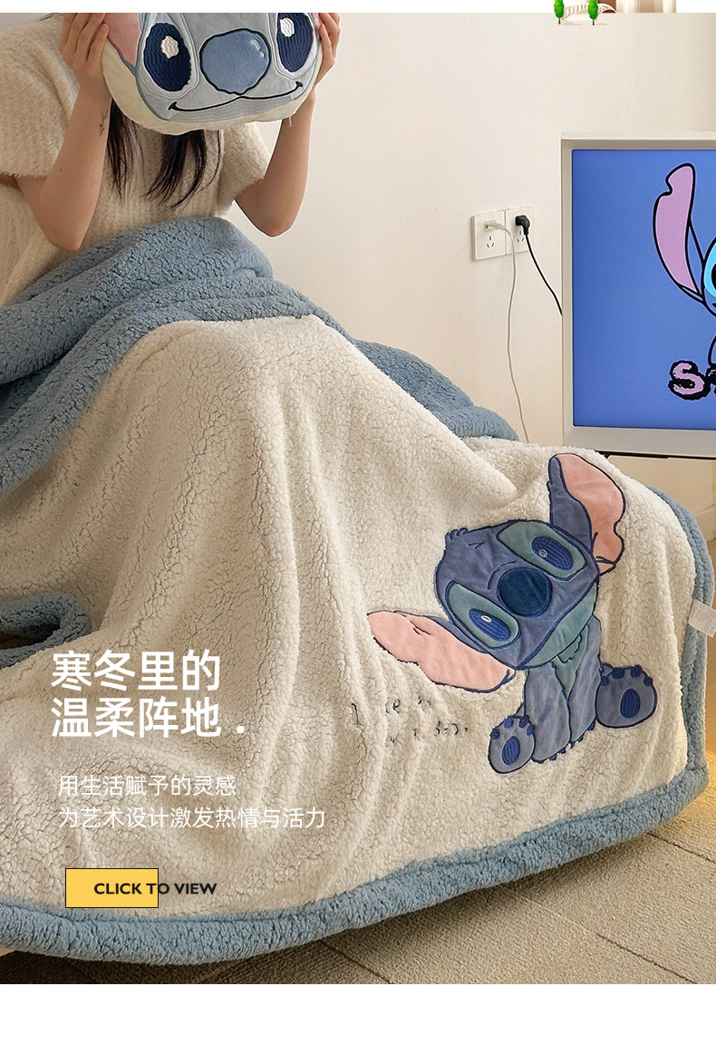 小叮当家纺仓储工厂店 2025新款A类母婴级迪士尼毛毯牛奶绒毯珊瑚绒毛毯沙发毯盖毯雪花绒毛毯午睡毯子 贴布绣-卖萌史迪仔